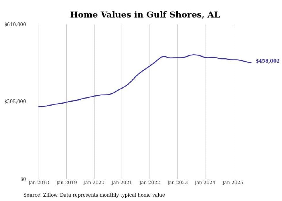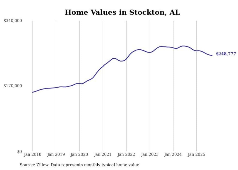 Stacker compiled a list of cities with the most expensive homes in the Daphne-Fairhope-Foley, AL metro area using data from Zillow. Charts show the monthly typical home value since January 2018.
