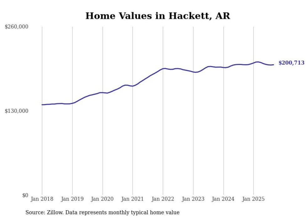 Stacker compiled a list of cities with the most expensive homes in the Fort Smith, AR-OK metro area using data from Zillow. Charts show the monthly typical home value since January 2018.