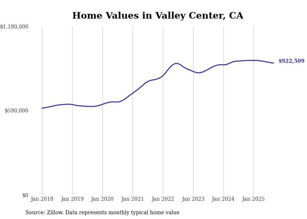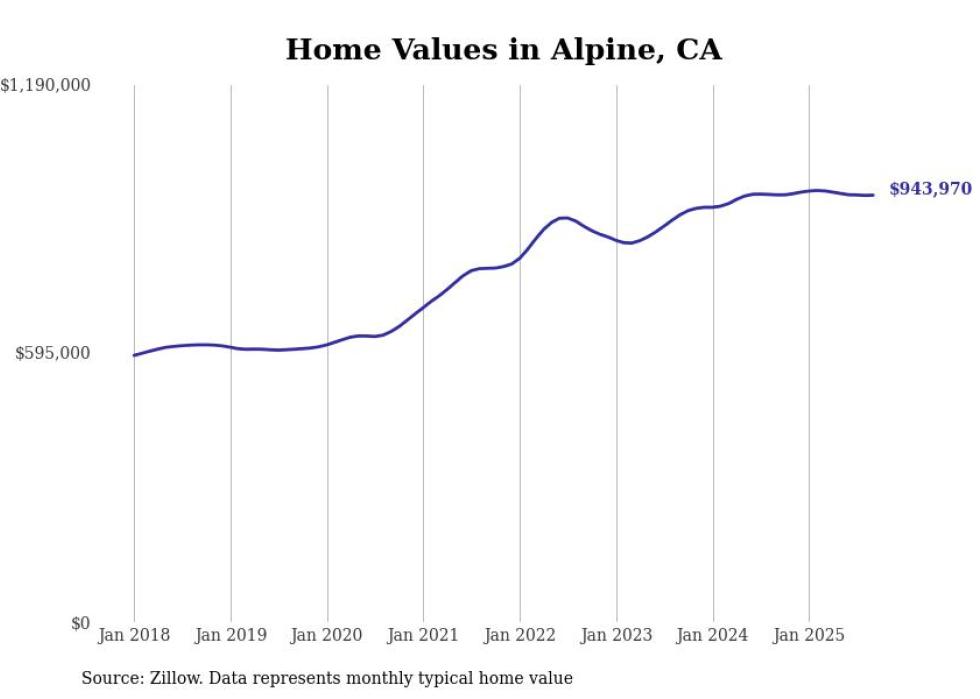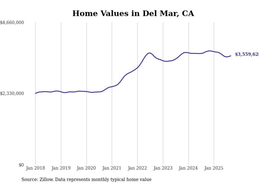 Stacker compiled a list of cities with the most expensive homes in the San Diego metro area using data from Zillow. Charts show the monthly typical home value since January 2018. Data was available for 43 cities and towns.