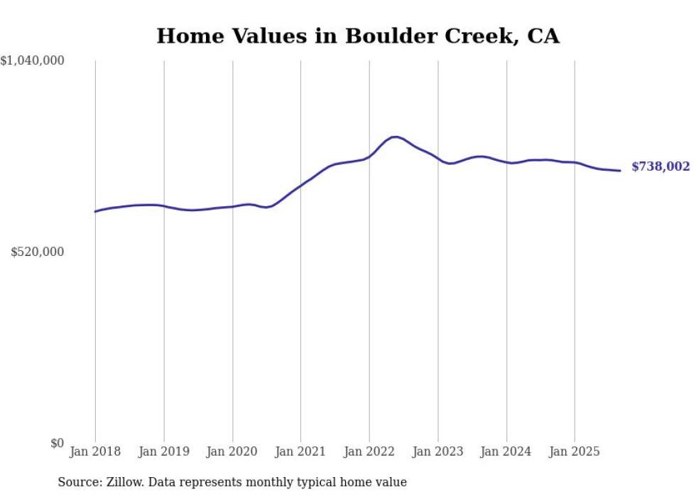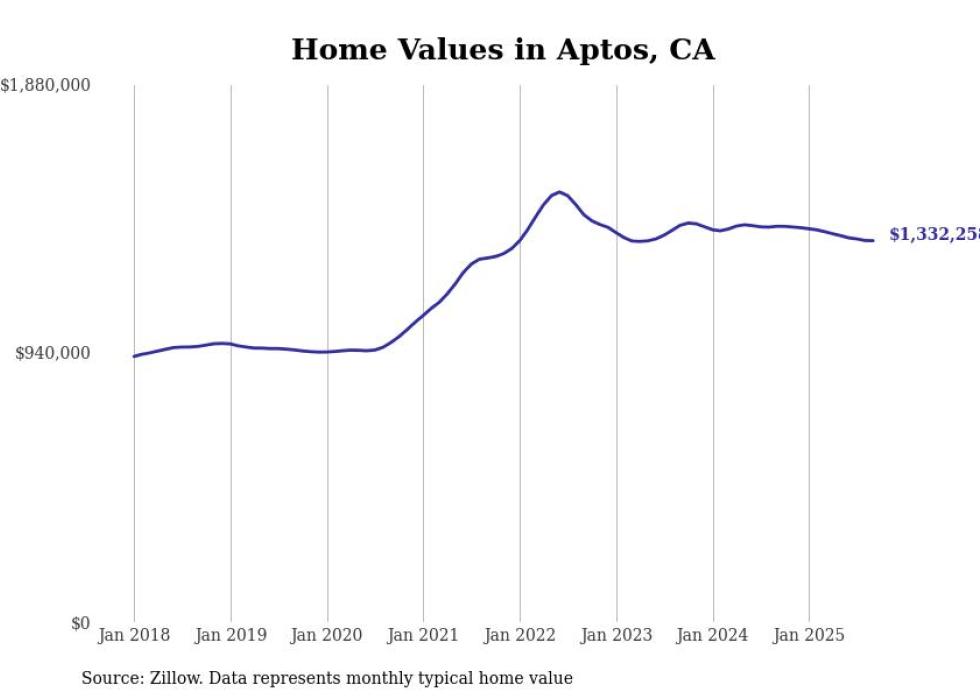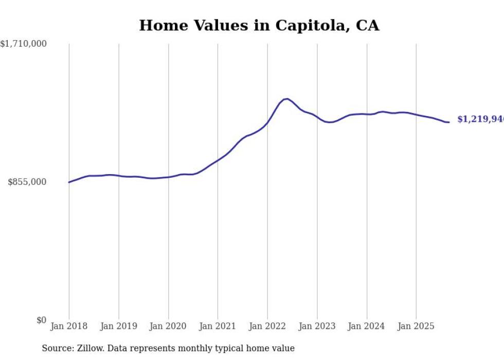 Stacker compiled a list of cities with the most expensive homes in the Santa Cruz-Watsonville, CA metro area using data from Zillow. Charts show the monthly typical home value since January 2018.