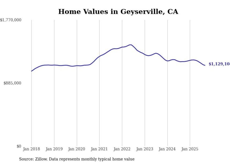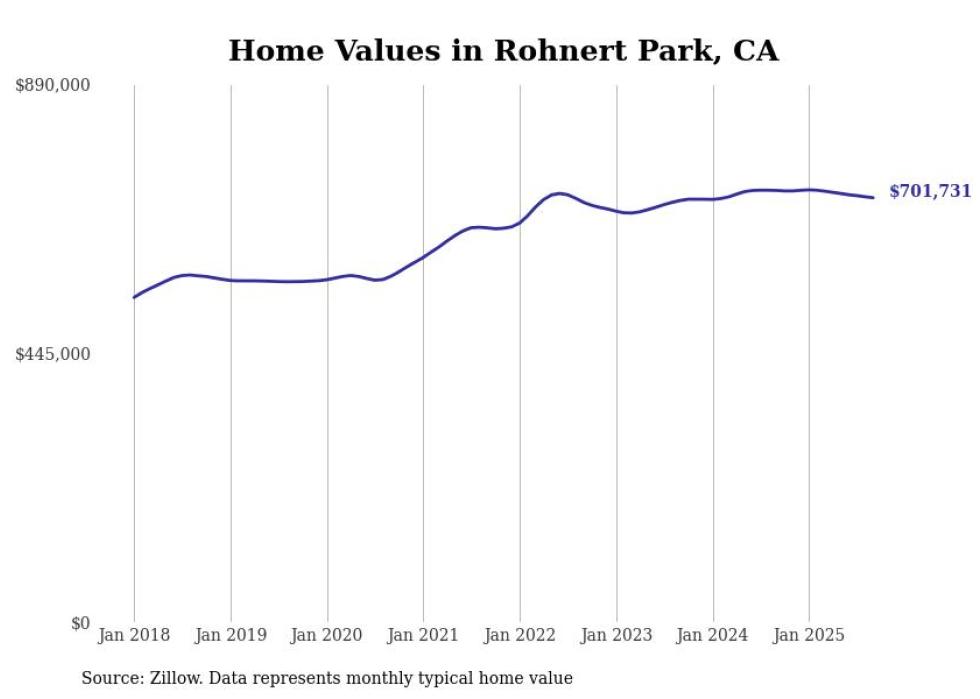Stacker compiled a list of cities with the most expensive homes in the Santa Rosa-Petaluma, CA metro area using data from Zillow. Charts show the monthly typical home value since January 2018.