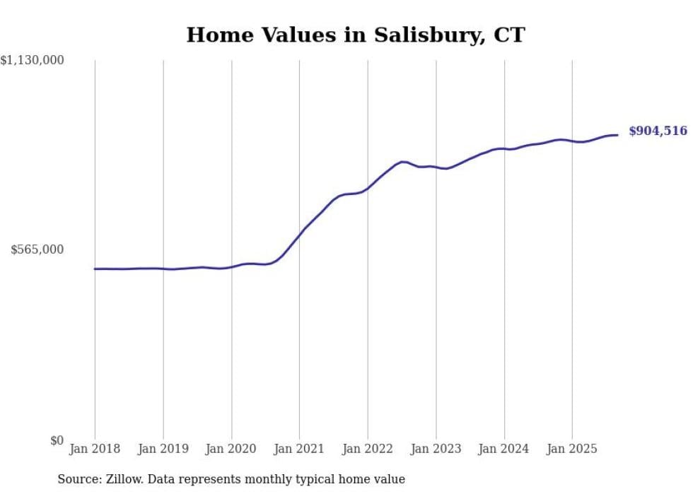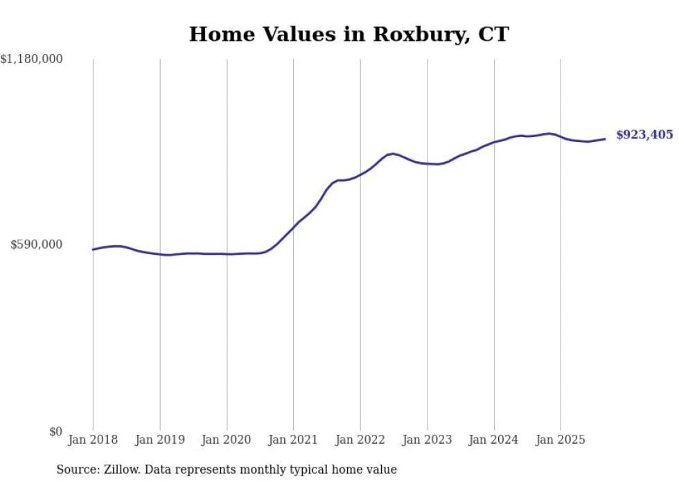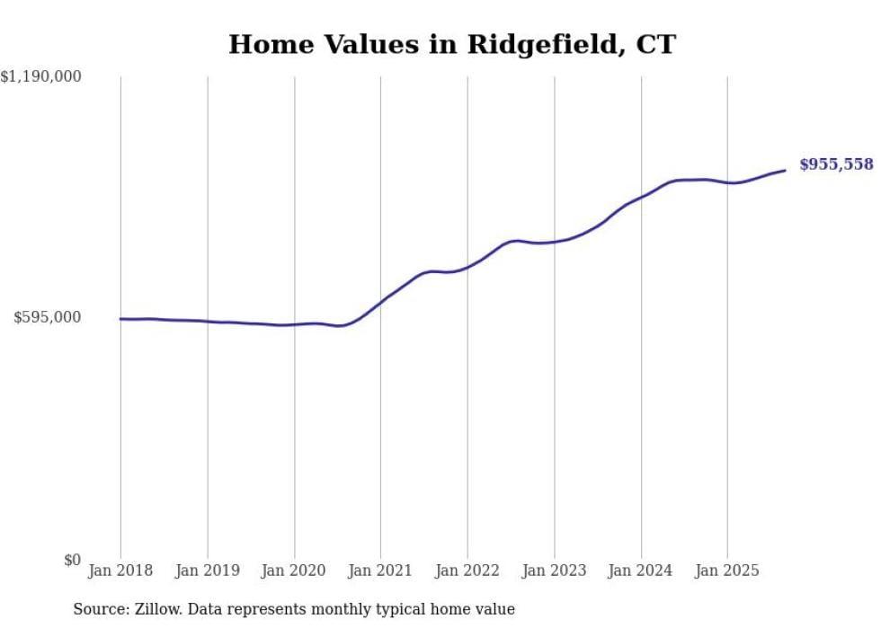 Stacker compiled a list of cities with the most expensive homes in Connecticut using data from Zillow. Cities are ranked by the Zillow Home Values Index for all homes as of September 2025. The charts in this story were created automatically using Matplotlib.