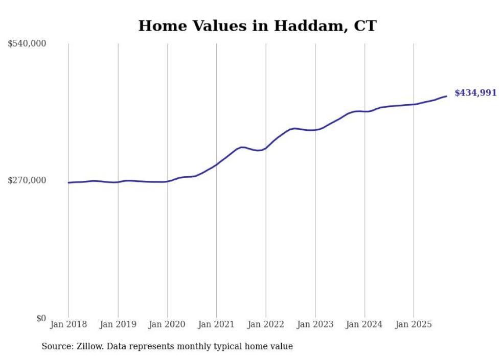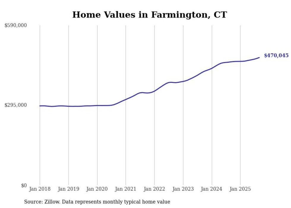 Stacker compiled a list of cities with the most expensive homes in the Hartford metro area using data from Zillow. Charts show the monthly typical home value since January 2018. Data was available for 59 cities and towns.