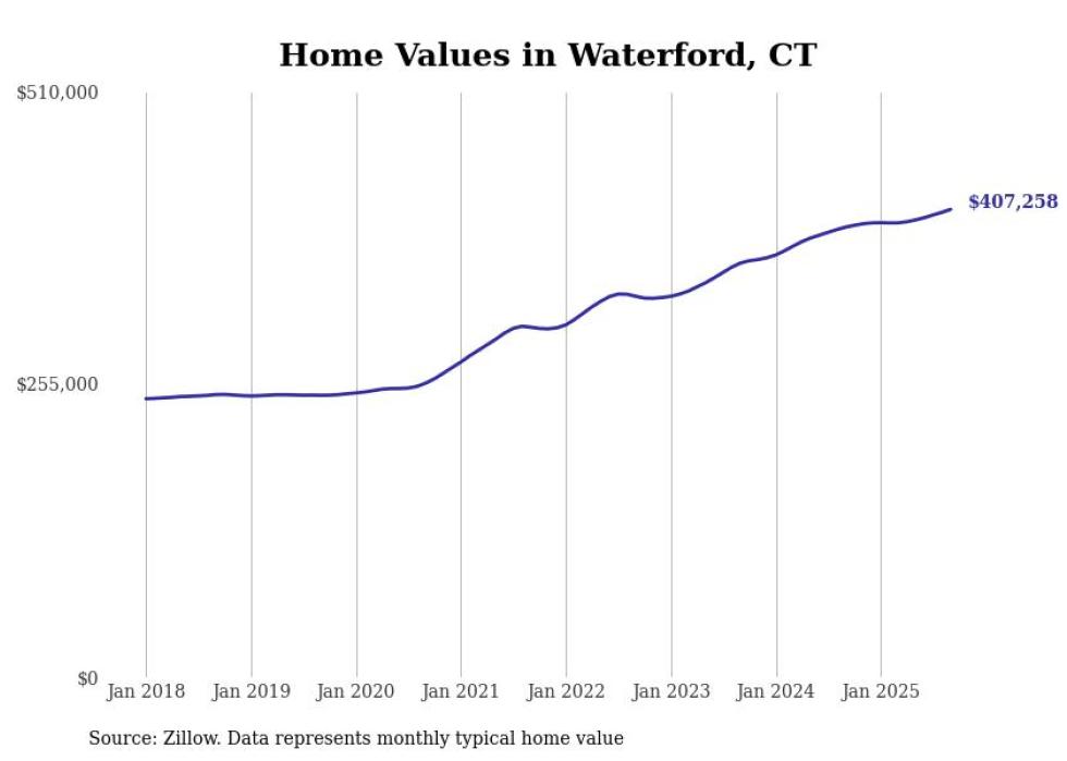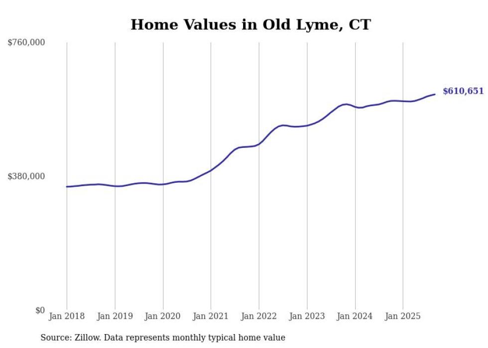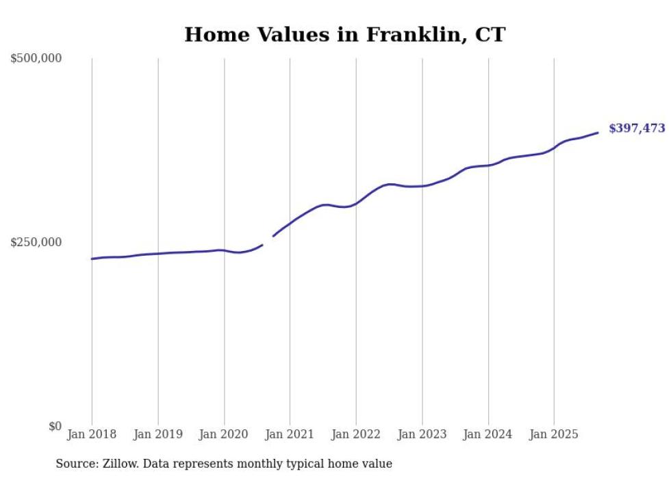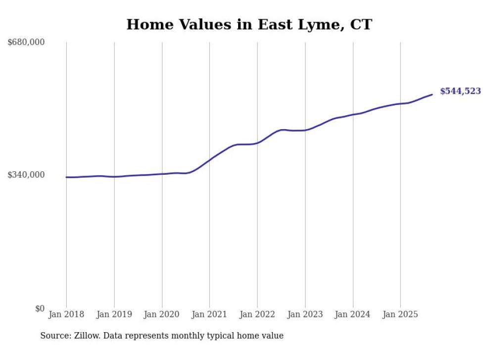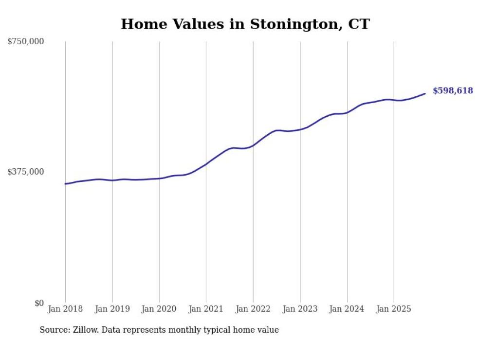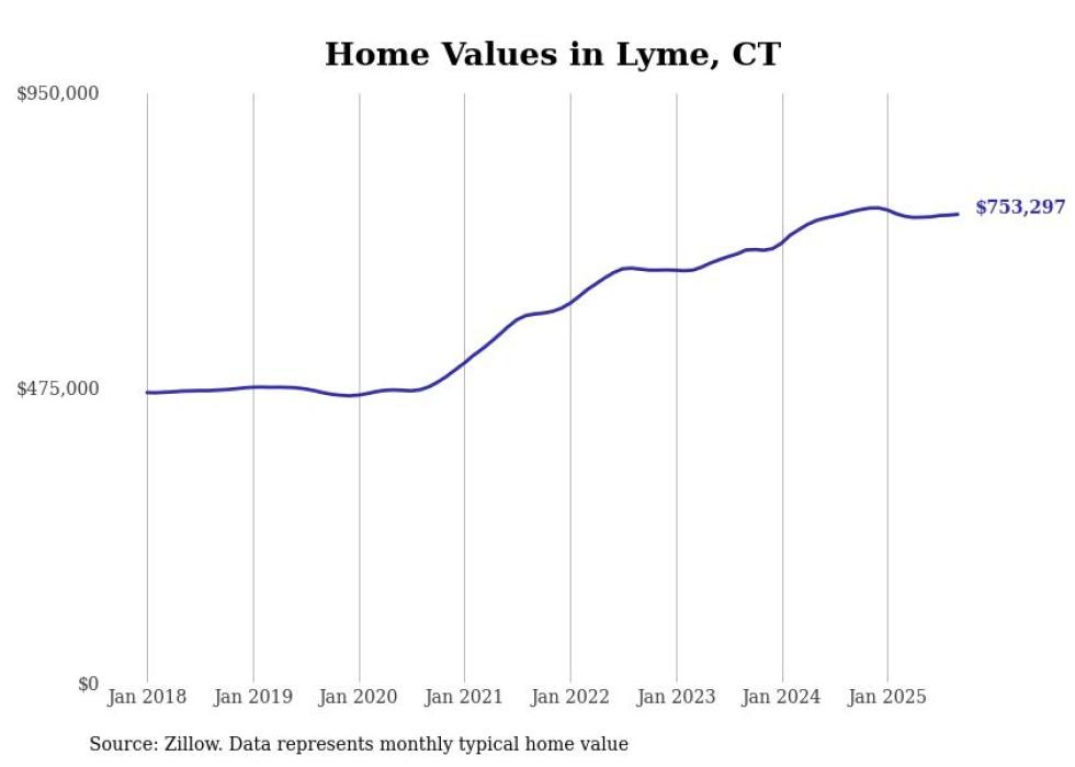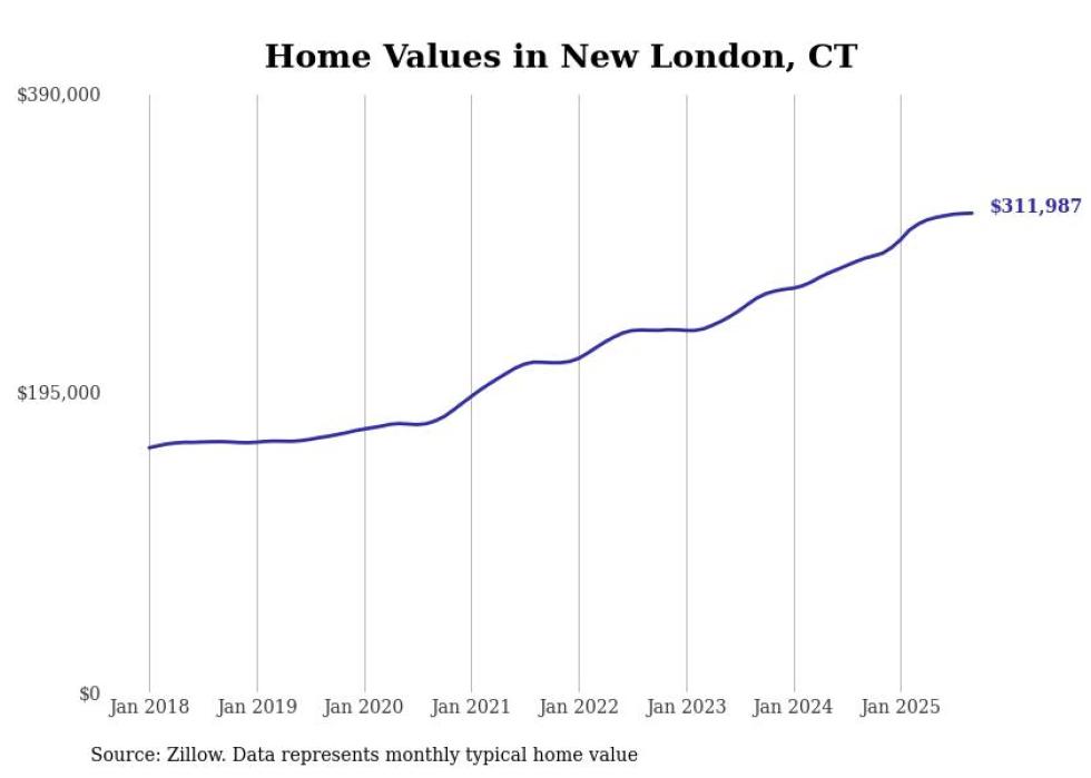 Stacker compiled a list of cities with the most expensive homes in the Norwich metro area using data from Zillow. Charts show the monthly typical home value since January 2018. All 22 cities and towns with data available were included in the list.