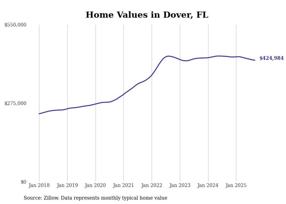 Stacker compiled a list of cities with the most expensive homes in the Tampa metro area using data from Zillow. Charts show the monthly typical home value since January 2018. Data was available for 66 cities and towns.