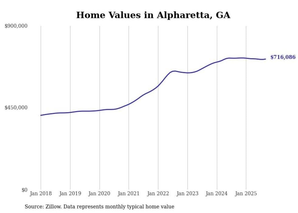 Stacker compiled a list of cities with the most expensive homes in Georgia using data from Zillow. Cities are ranked by the Zillow Home Values Index for all homes as of September 2025. The charts in this story were created automatically using Matplotlib.