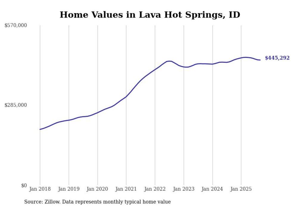 Stacker compiled a list of cities with the most expensive homes in the Pocatello, ID metro area using data from Zillow. Charts show the monthly typical home value since January 2018.