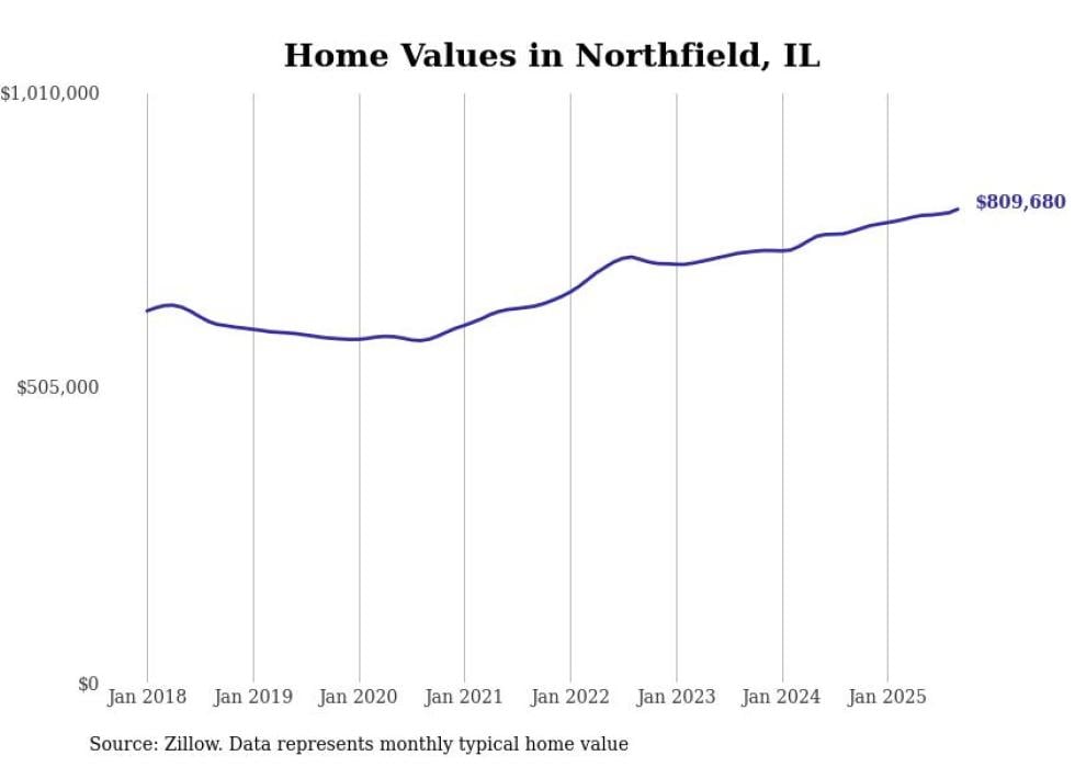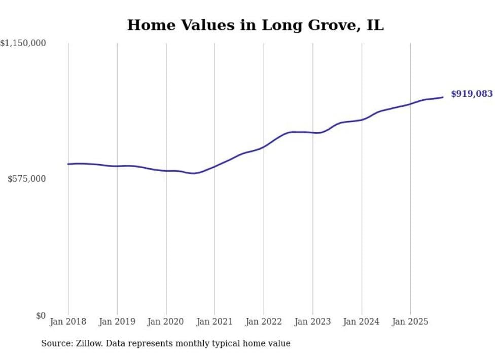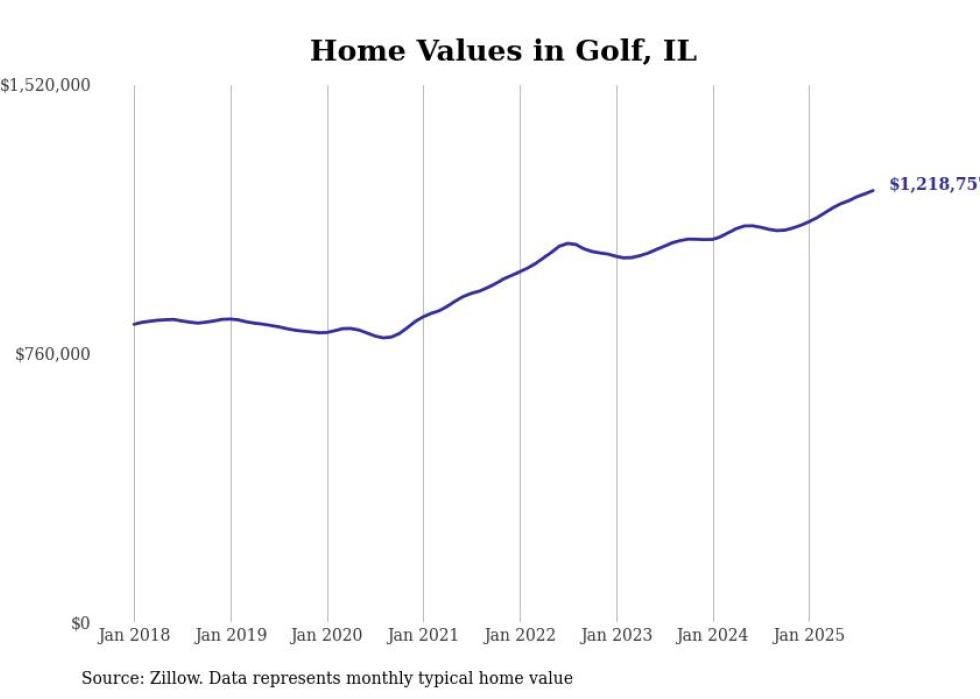 Stacker compiled a list of cities with the most expensive homes in the Chicago-Naperville-Elgin, IL-IN-WI metro area using data from Zillow. Charts show the monthly typical home value since January 2018.