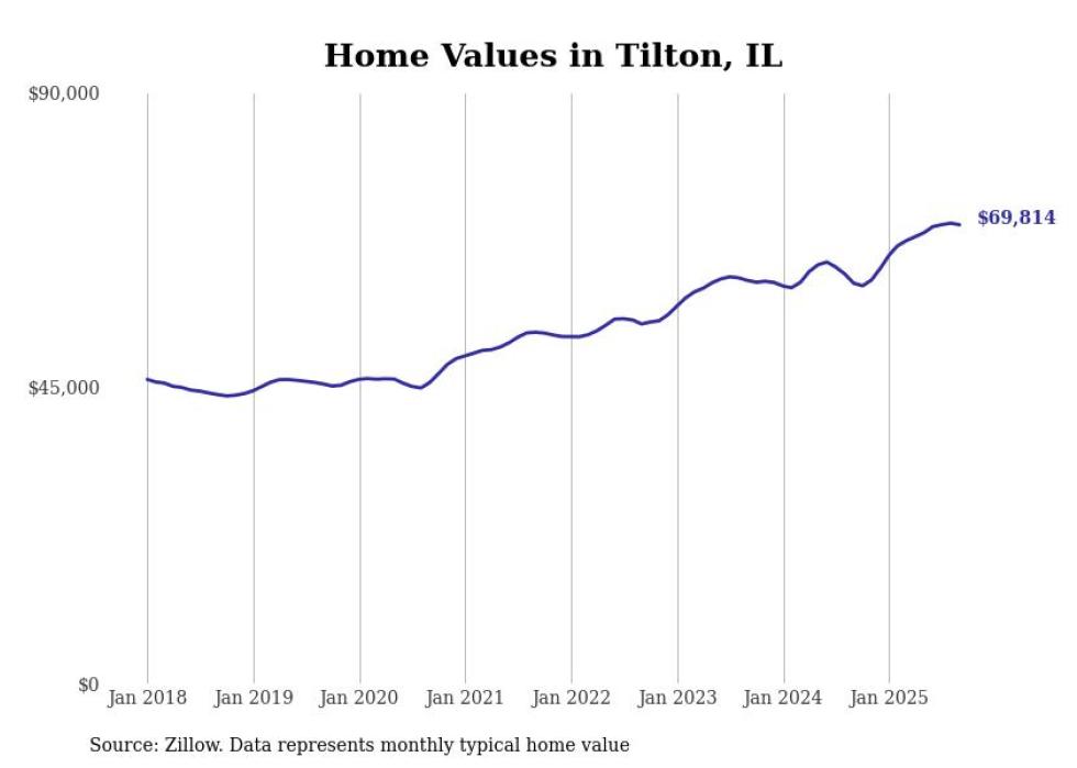 Stacker compiled a list of cities with the most expensive homes in the Danville metro area using data from Zillow. Charts show the monthly typical home value since January 2018. All 18 cities and towns with data available were included in the list.