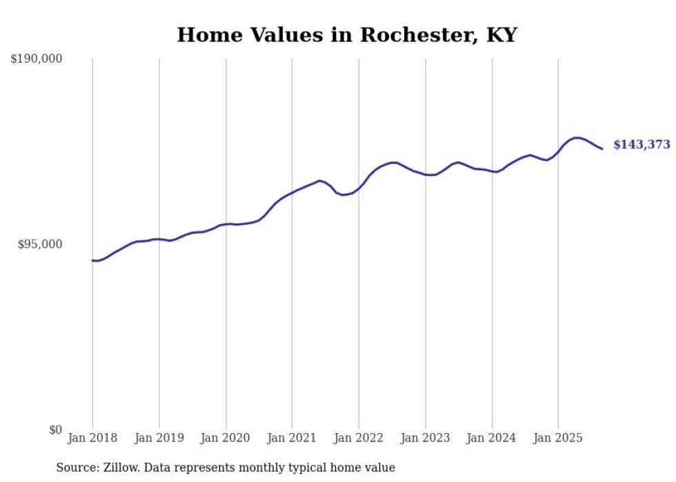 Stacker compiled a list of cities with the most expensive homes in the Bowling Green, KY metro area using data from Zillow. Charts show the monthly typical home value since January 2018.
