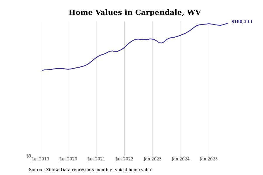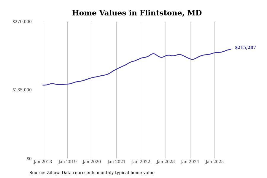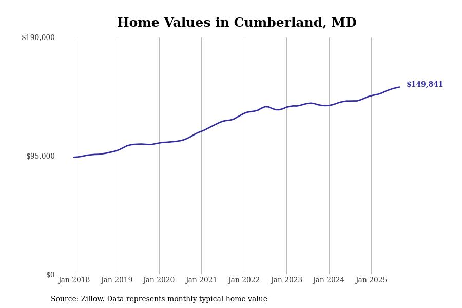 Stacker compiled a list of cities with the most expensive homes in the Cumberland metro area using data from Zillow. Charts show the monthly typical home value since January 2018. All 20 cities and towns with data available were included in the list.