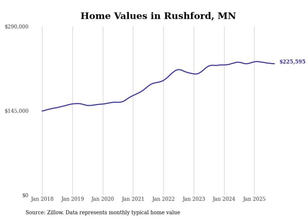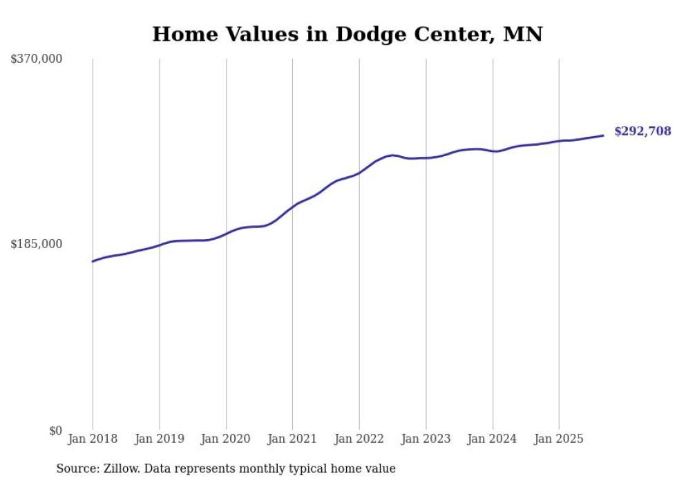 Stacker compiled a list of cities with the most expensive homes in the Rochester, MN metro area using data from Zillow. Charts show the monthly typical home value since January 2018.