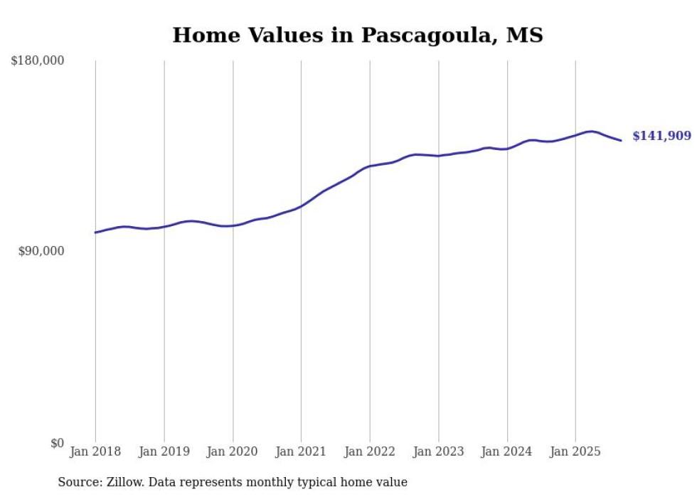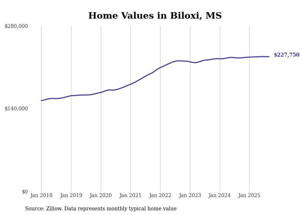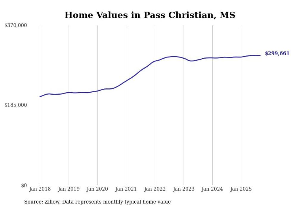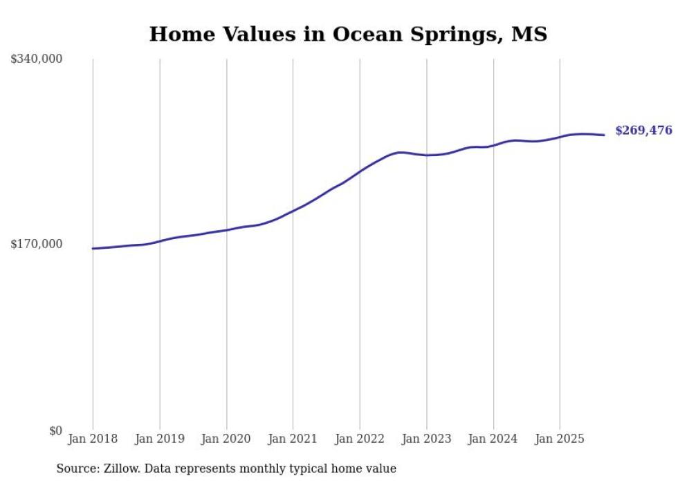 Stacker compiled a list of cities with the most expensive homes in the Gulfport-Biloxi, MS metro area using data from Zillow. Charts show the monthly typical home value since January 2018.