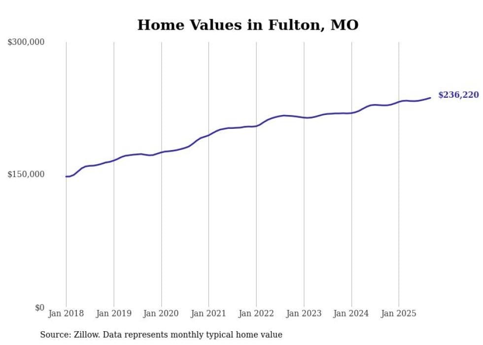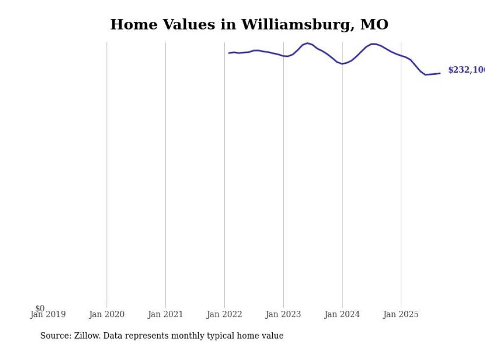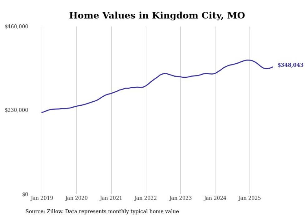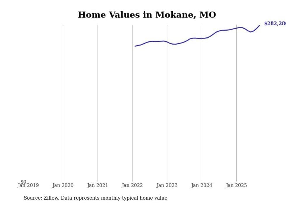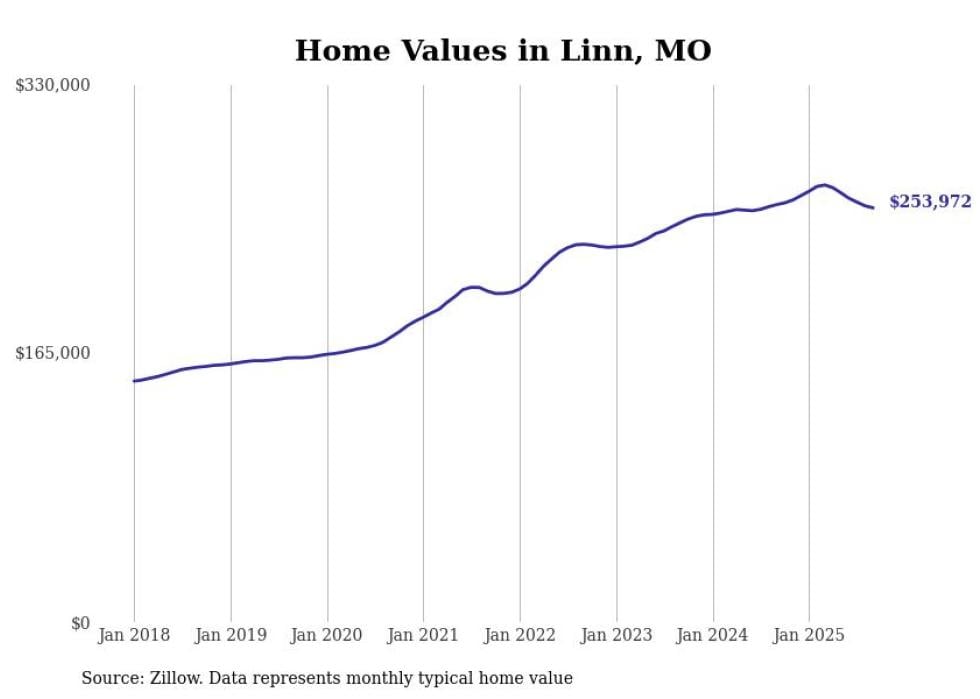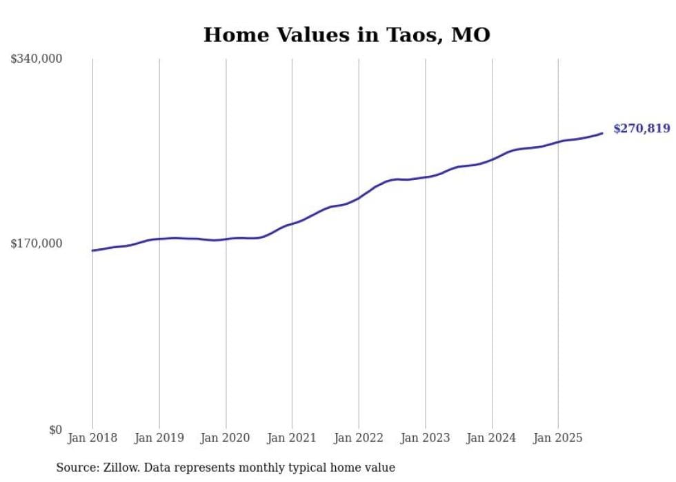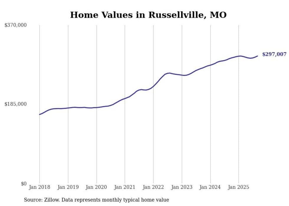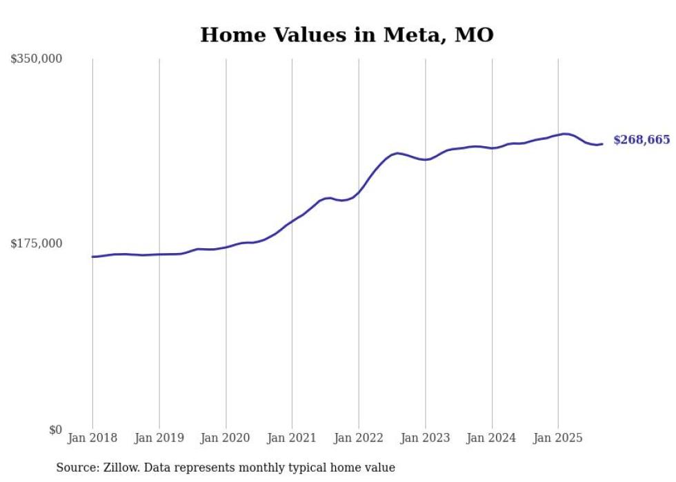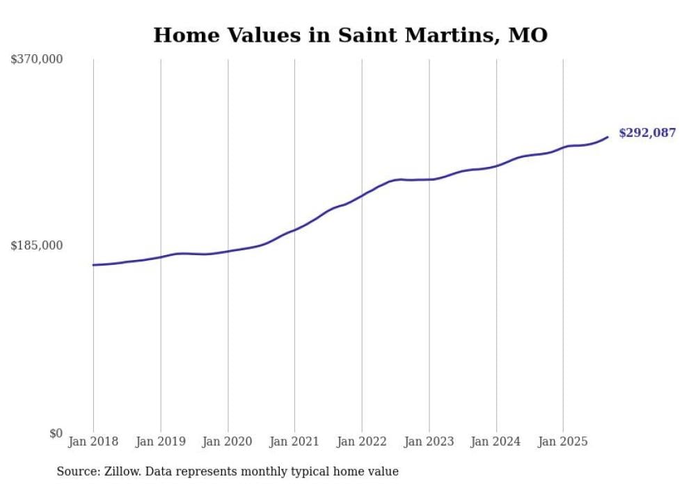 Stacker compiled a list of cities with the most expensive homes in the Jefferson City metro area using data from Zillow. Charts show the monthly typical home value since January 2018. All 29 cities and towns with data available were included in the list.