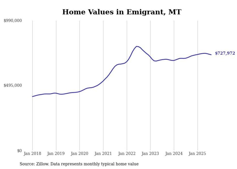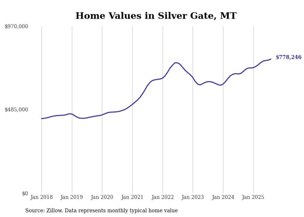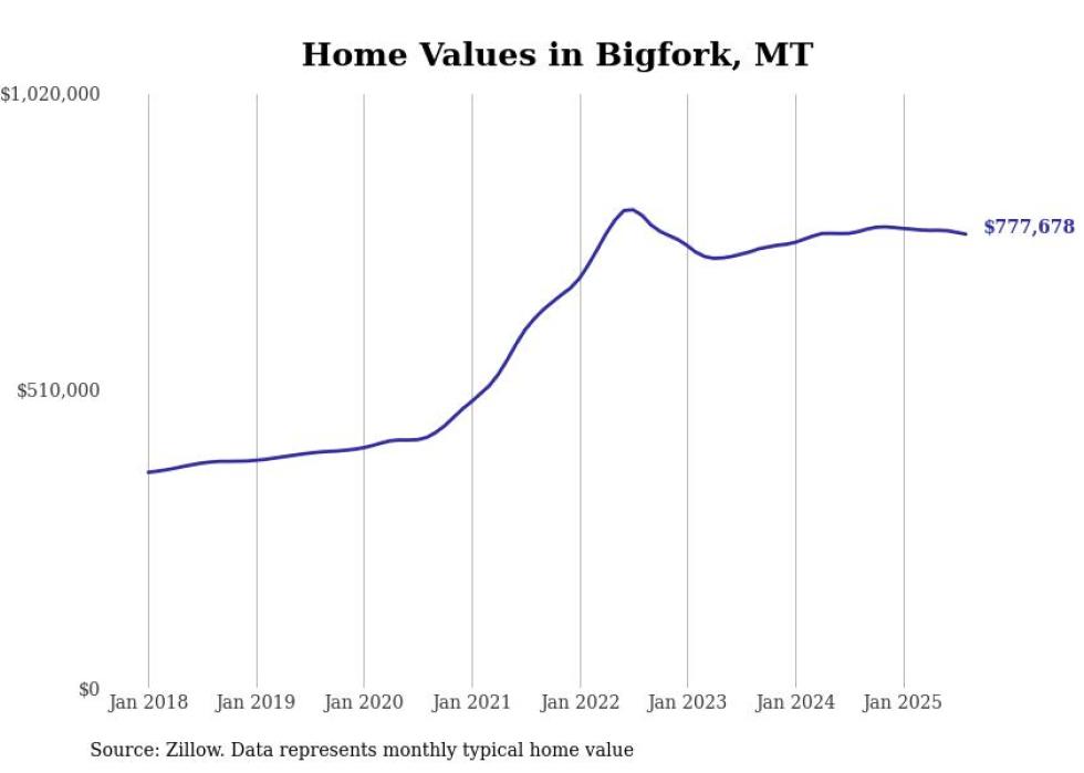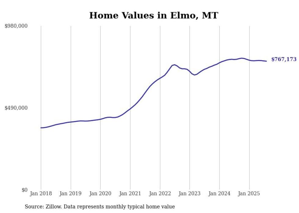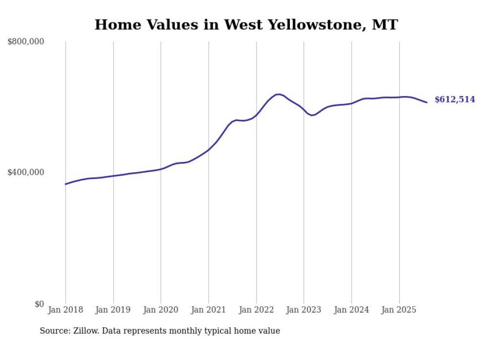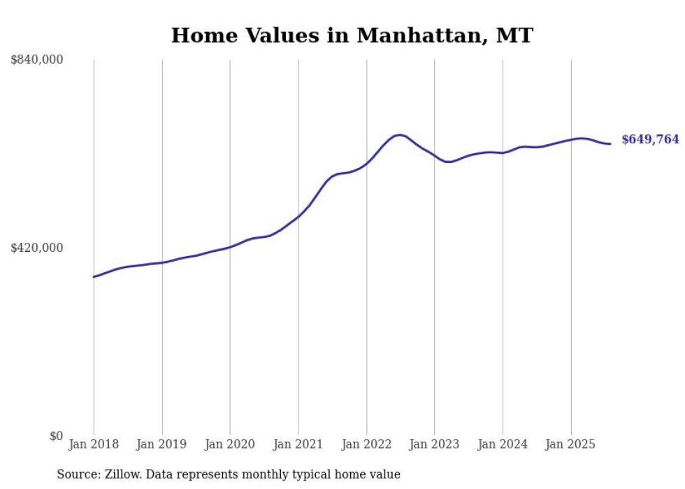 Stacker compiled a list of cities with the most expensive homes in Montana using data from Zillow. Cities are ranked by the Zillow Home Values Index for all homes as of August 2025. The charts in this story were created automatically using Matplotlib.
