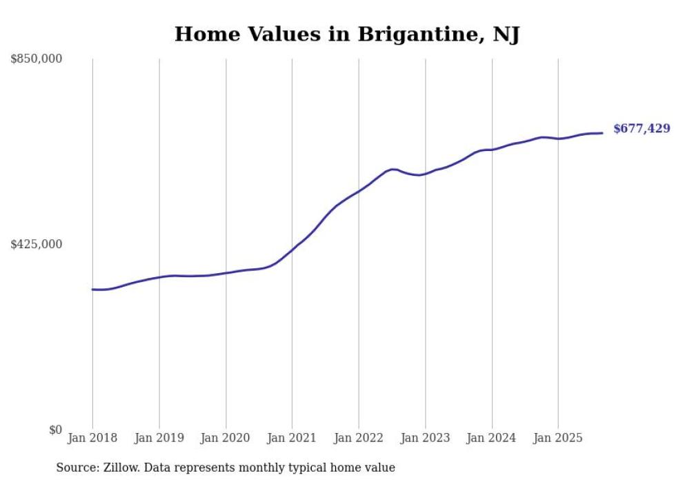 Stacker compiled a list of cities with the most expensive homes in the Atlantic City-Hammonton, NJ metro area using data from Zillow. Charts show the monthly typical home value since January 2018.