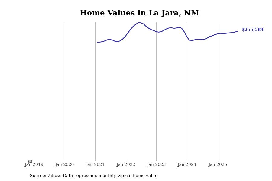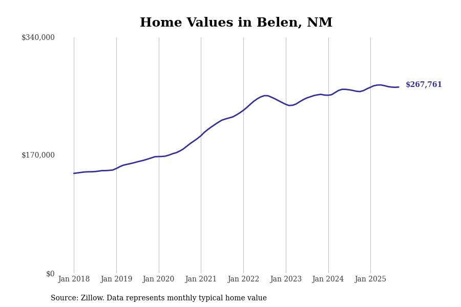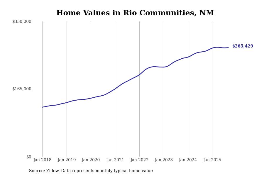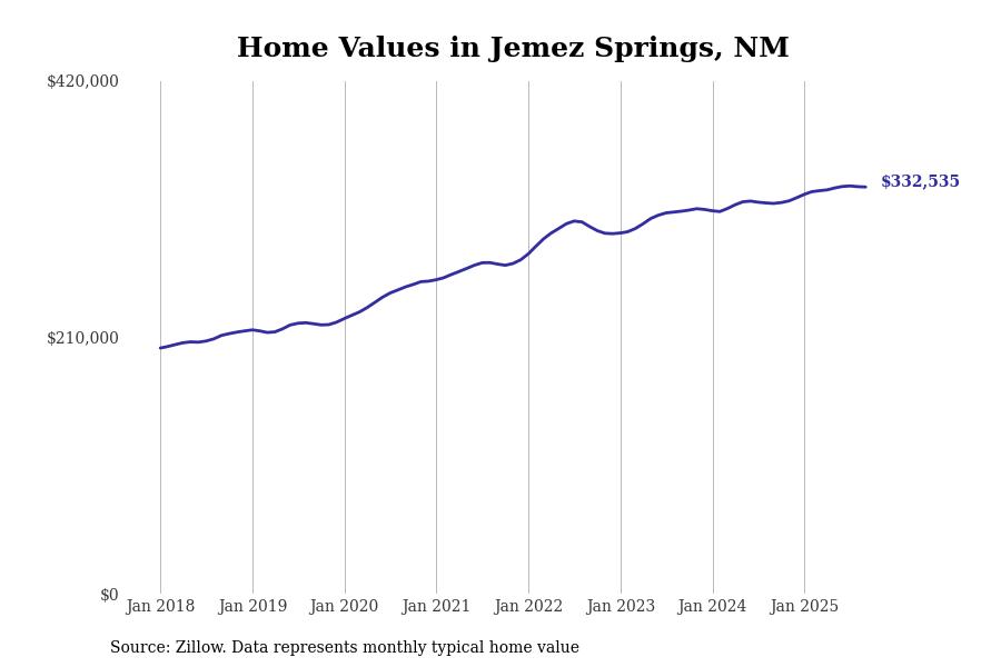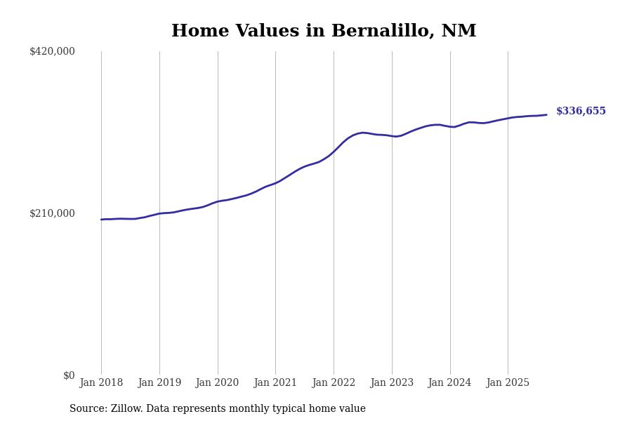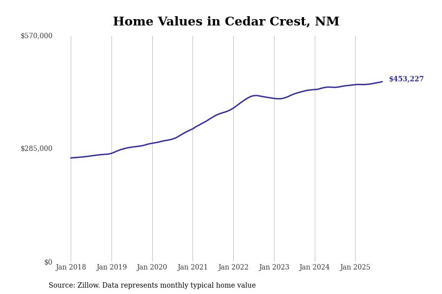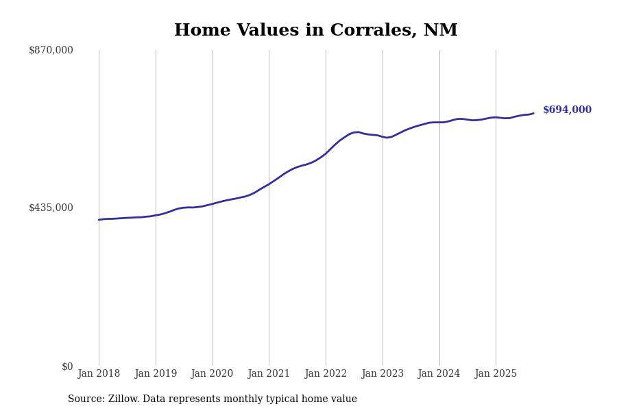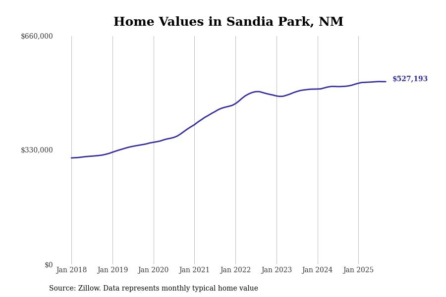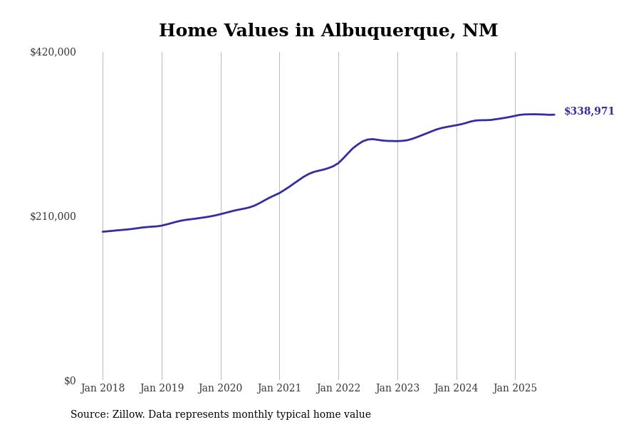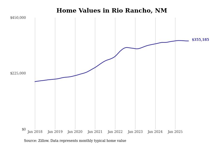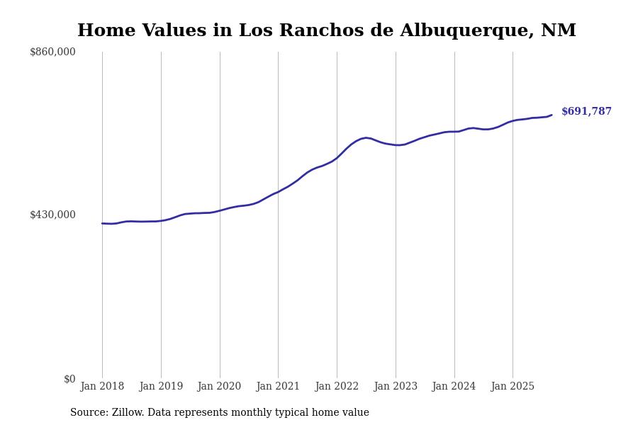 Stacker compiled a list of cities with the most expensive homes in the Albuquerque, NM metro area using data from Zillow. Charts show the monthly typical home value since January 2018.