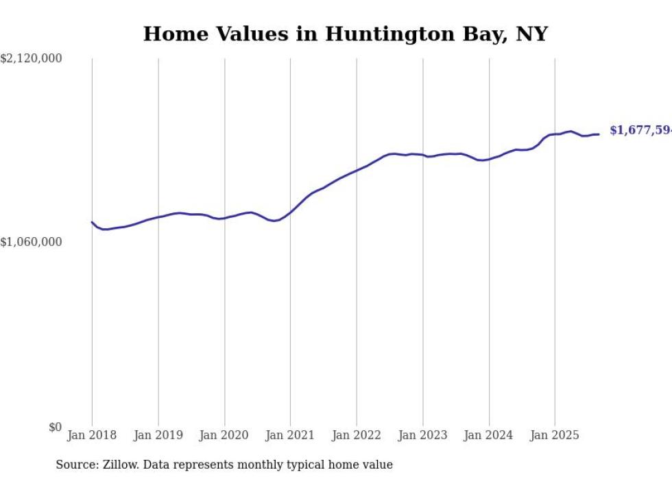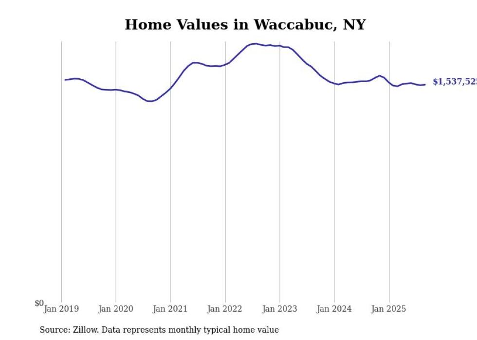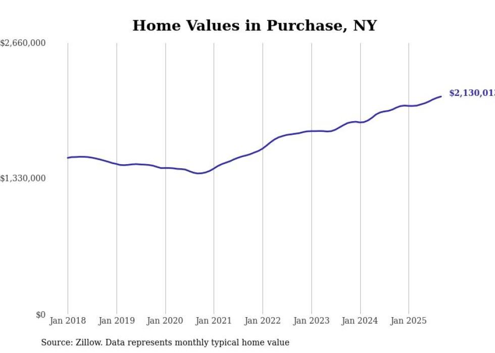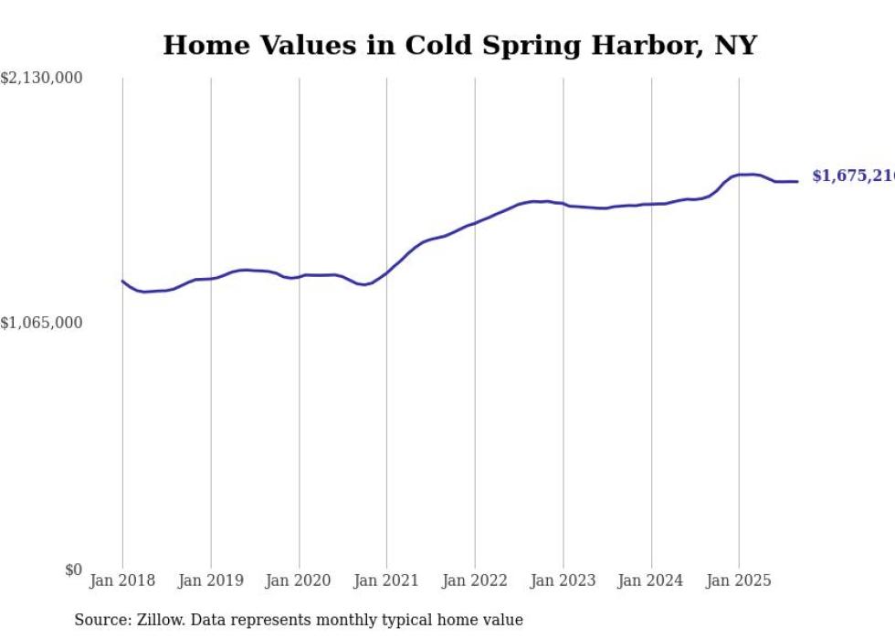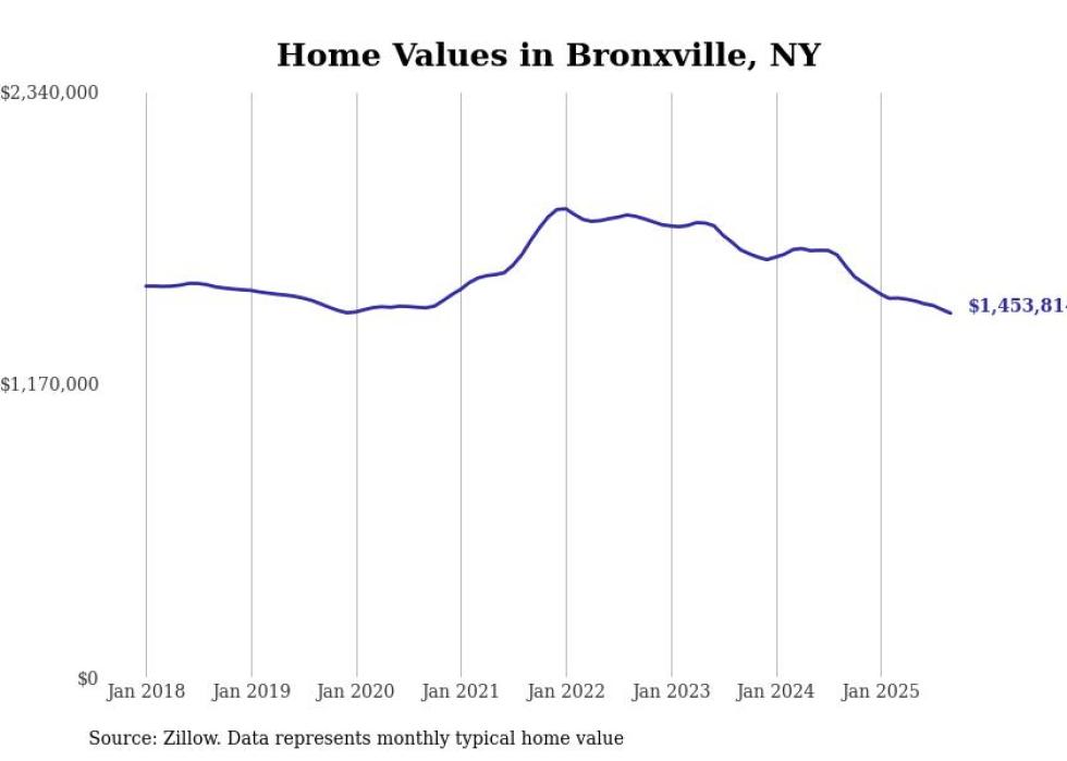Stacker compiled a list of cities with the most expensive homes in New York using data from Zillow. Cities are ranked by the Zillow Home Values Index for all homes as of September 2025. The charts in this story were created automatically using Matplotlib.