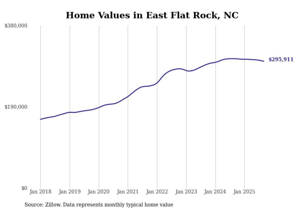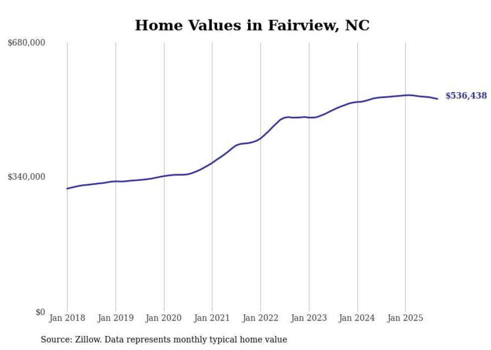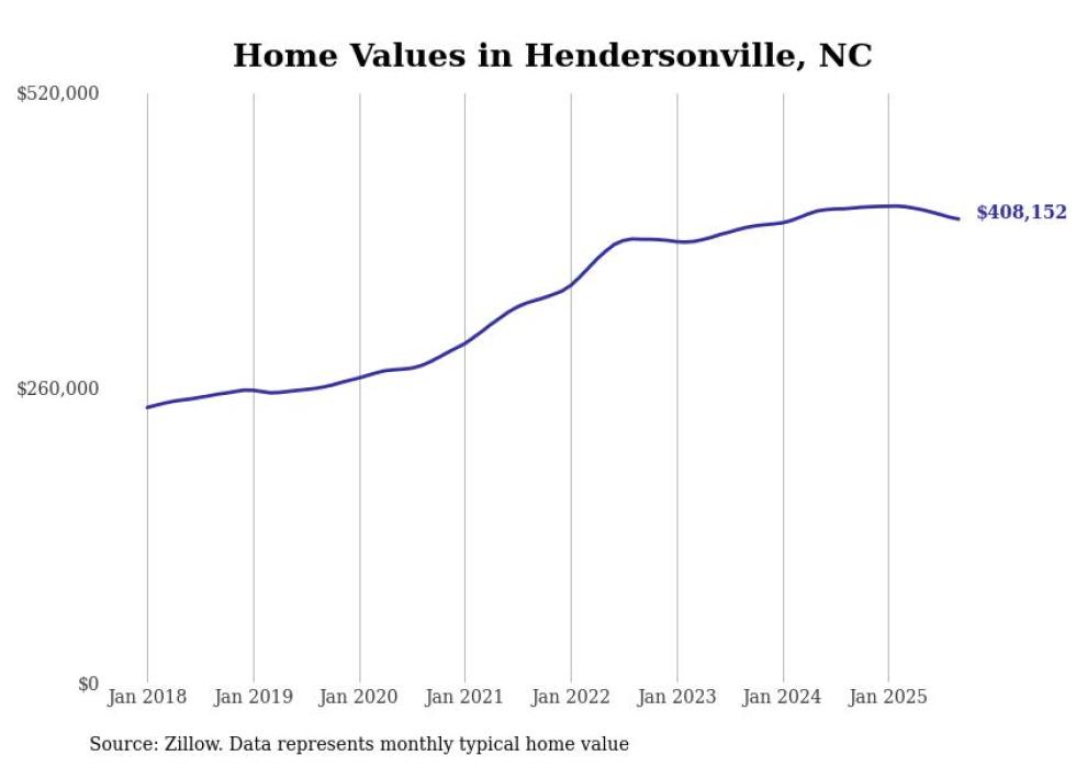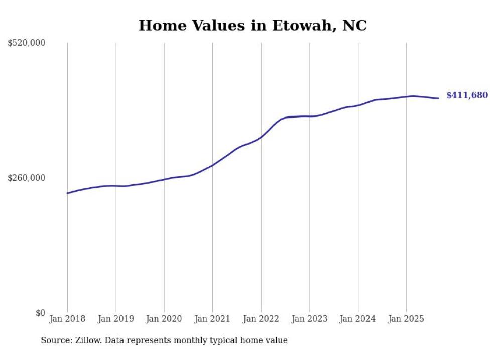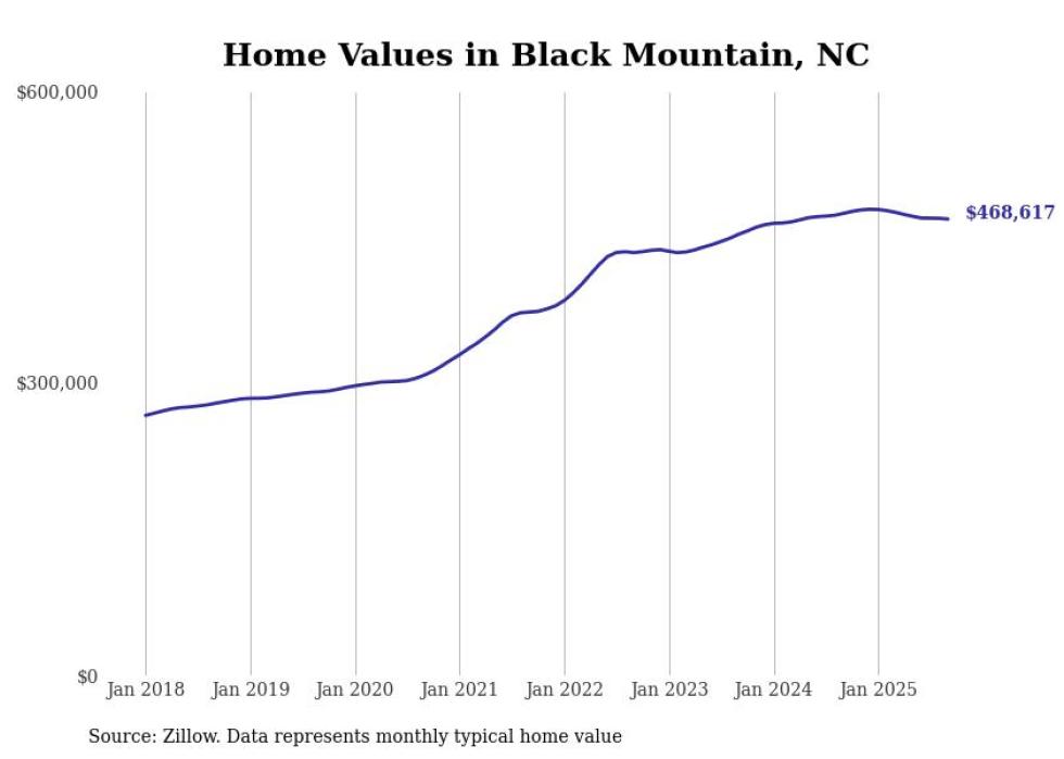 Stacker compiled a list of cities with the most expensive homes in the Asheville, NC metro area using data from Zillow. Charts show the monthly typical home value since January 2018.