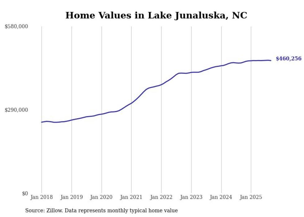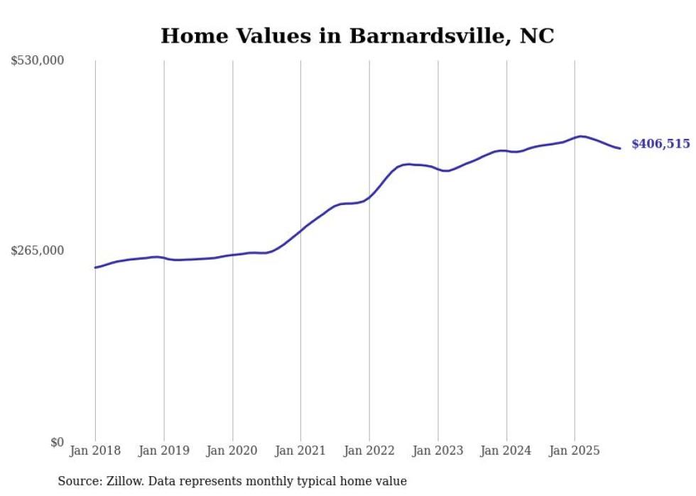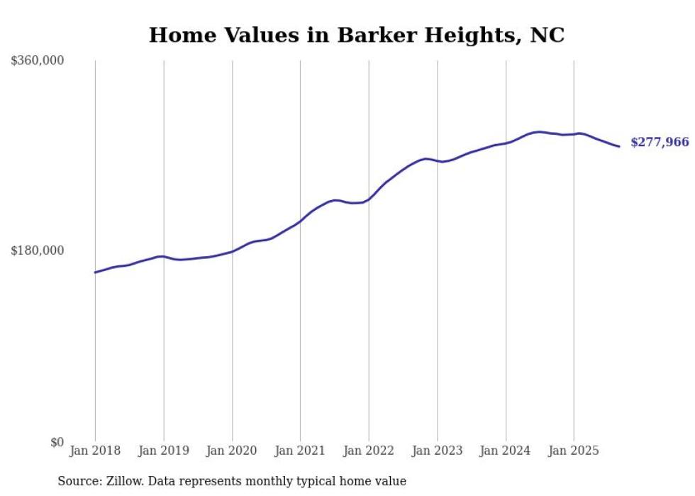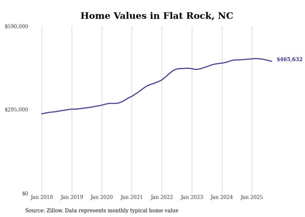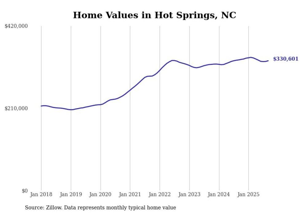 Stacker compiled a list of cities with the most expensive homes in the Asheville, NC metro area using data from Zillow. Charts show the monthly typical home value since January 2018.