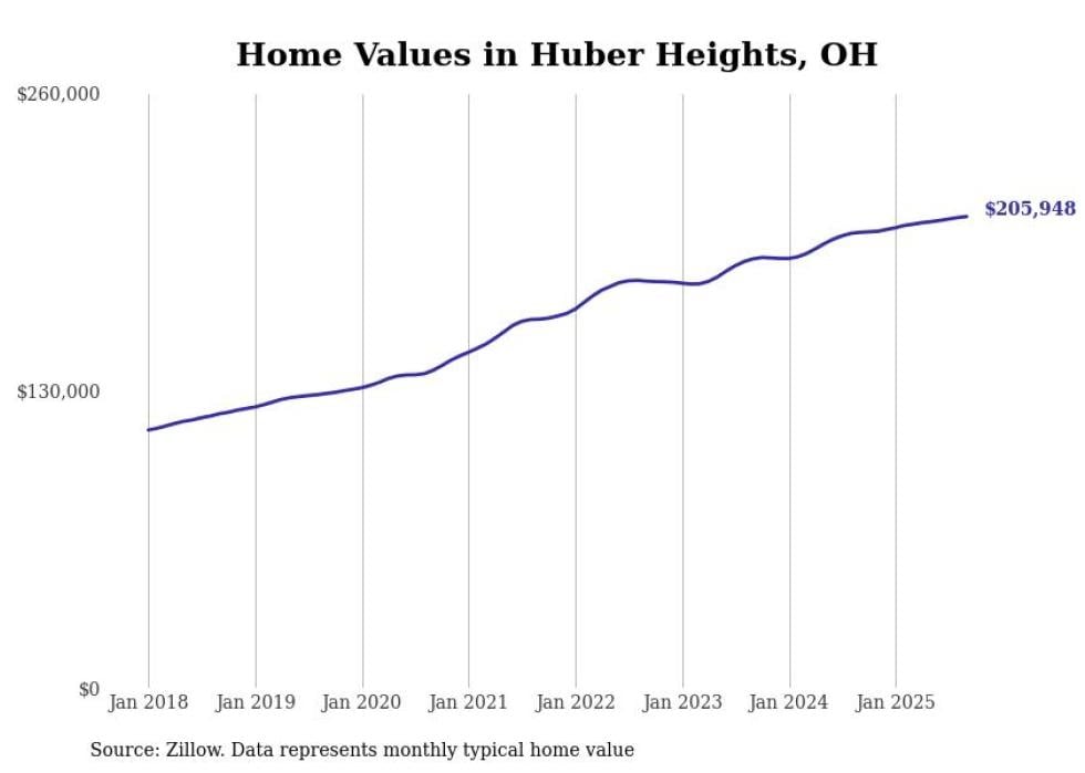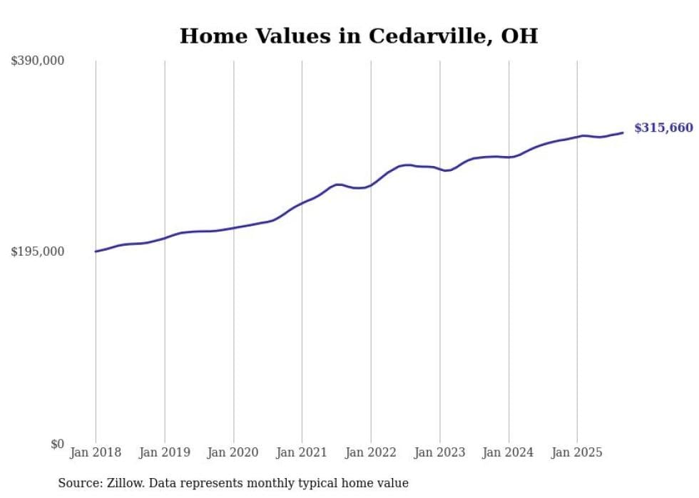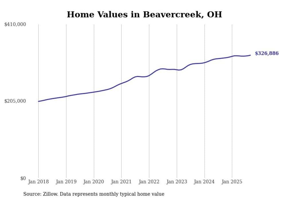 Stacker compiled a list of cities with the most expensive homes in the Dayton metro area using data from Zillow. Charts show the monthly typical home value since January 2018. Data was available for 42 cities and towns.