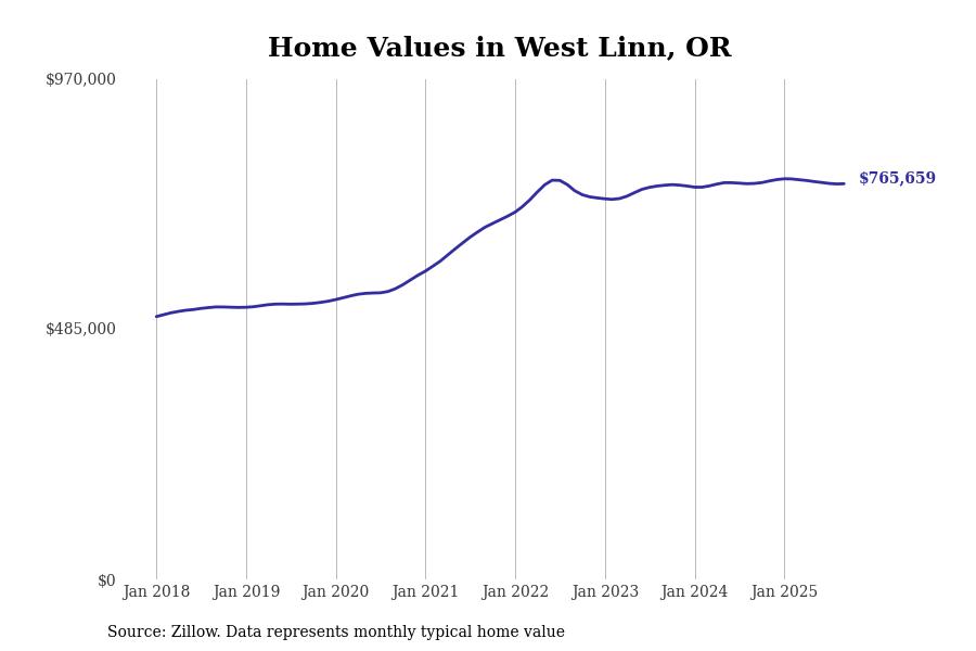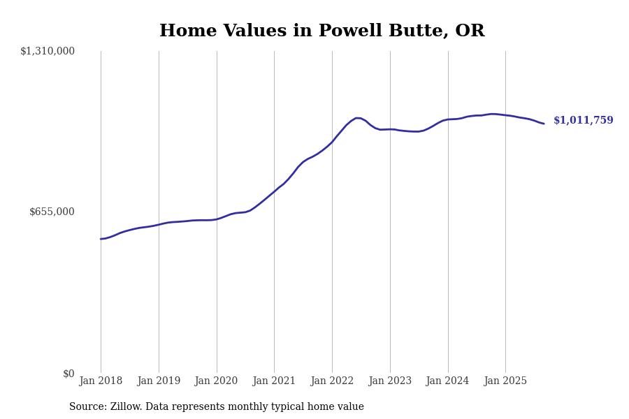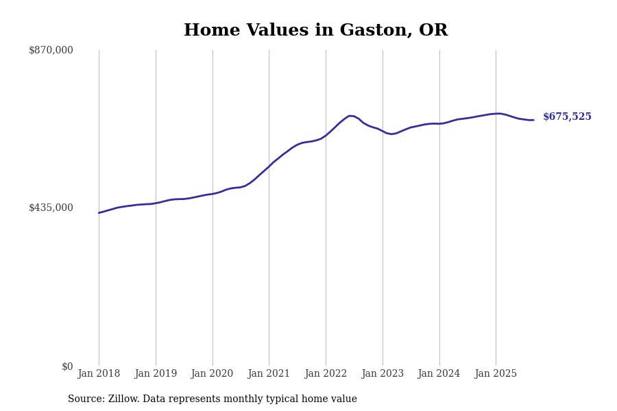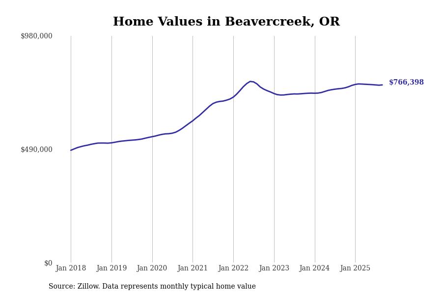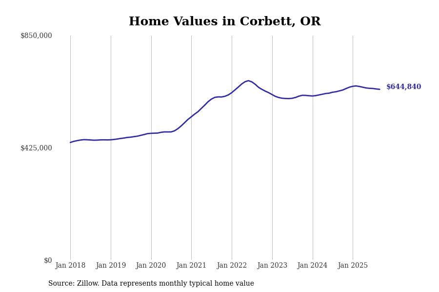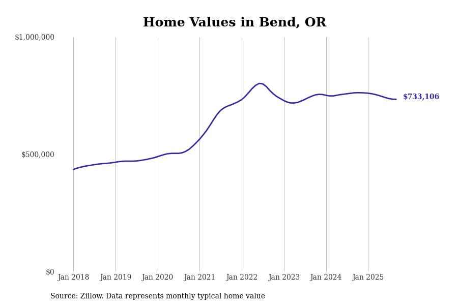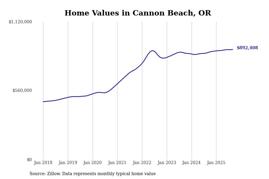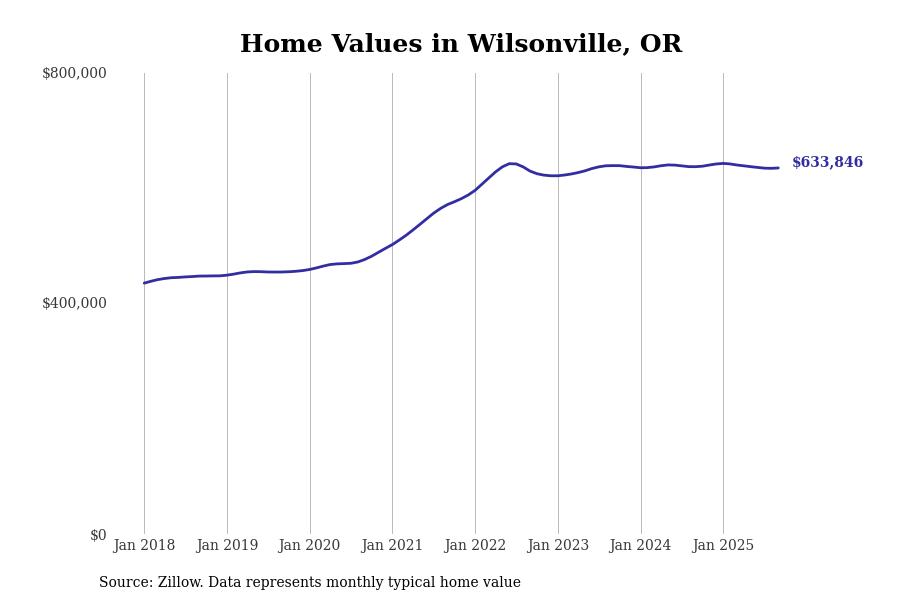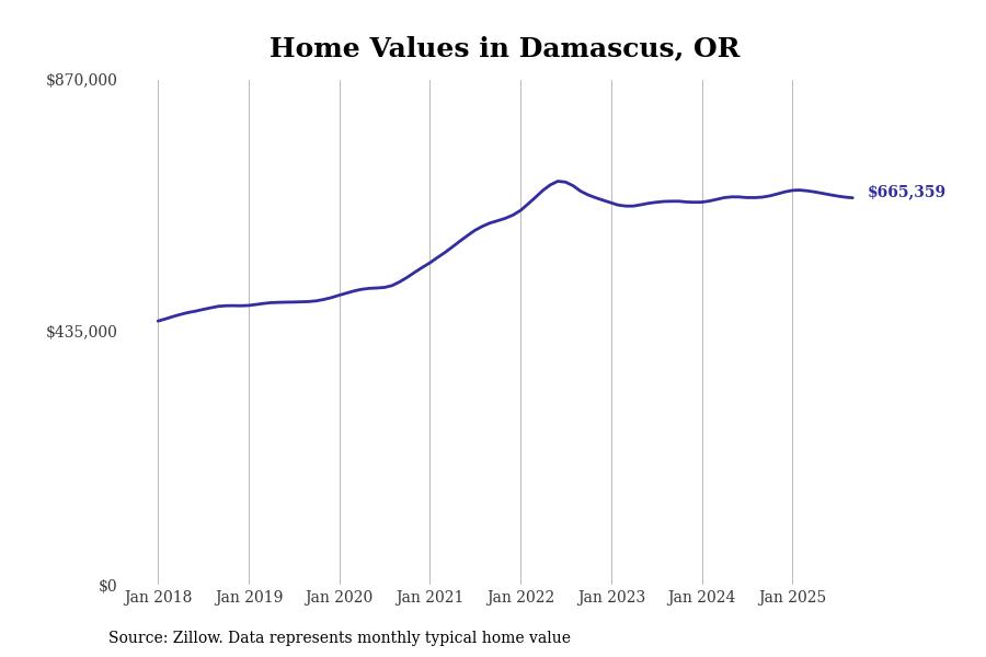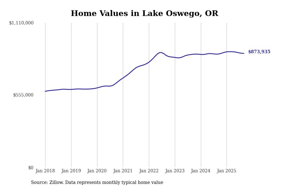 Stacker compiled a list of cities with the most expensive homes in Oregon using data from Zillow. Cities are ranked by the Zillow Home Values Index for all homes as of September 2025. The charts in this story were created automatically using Matplotlib.
