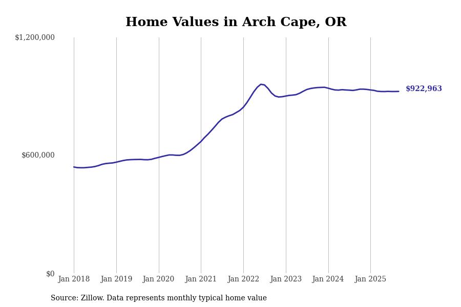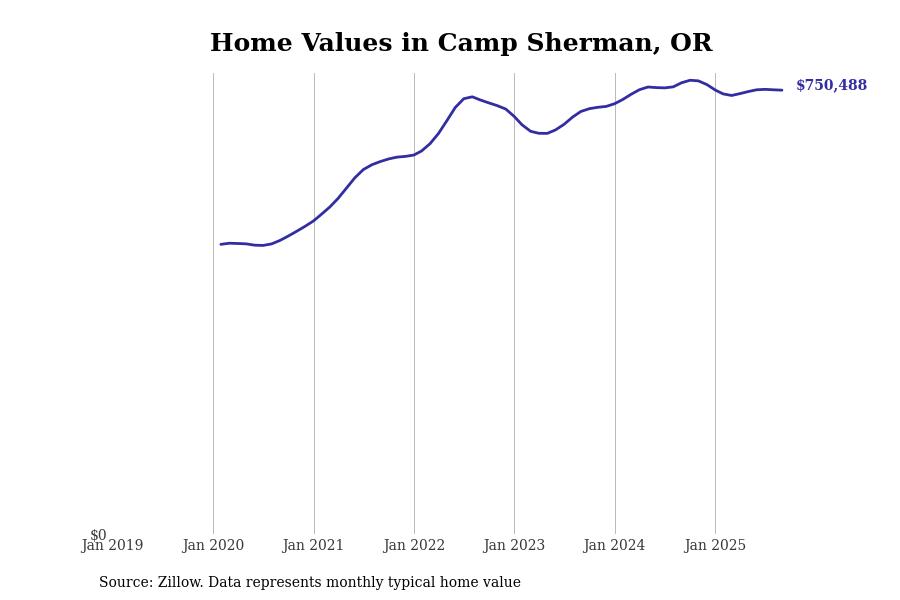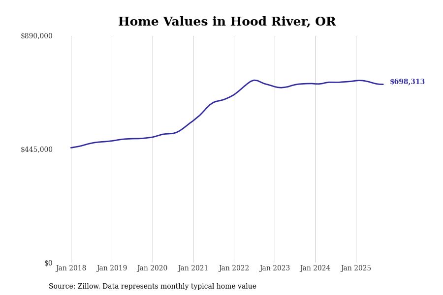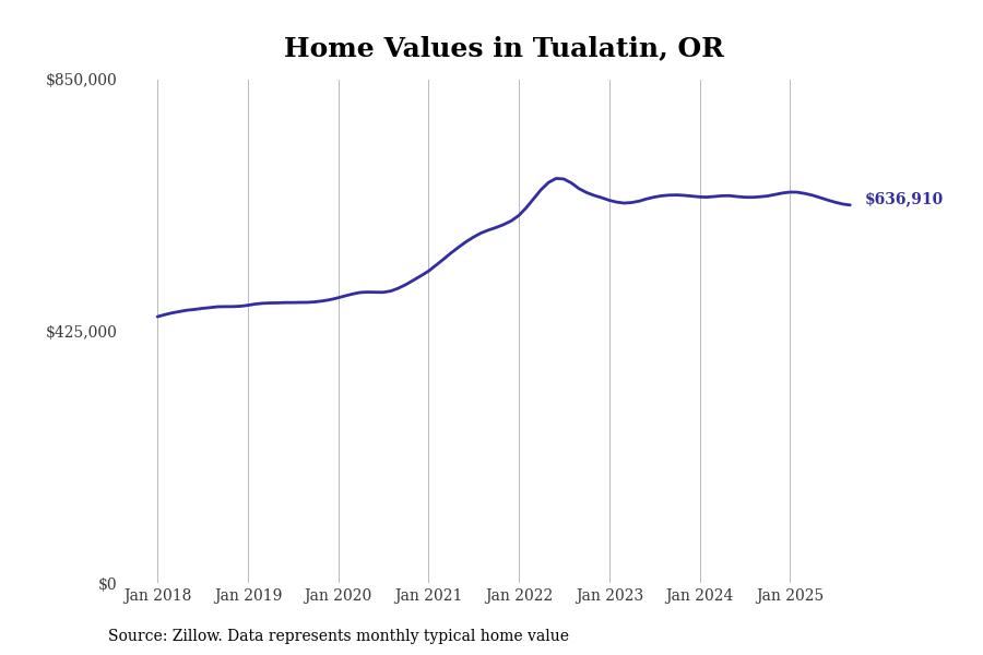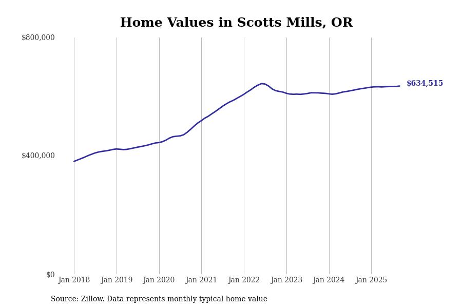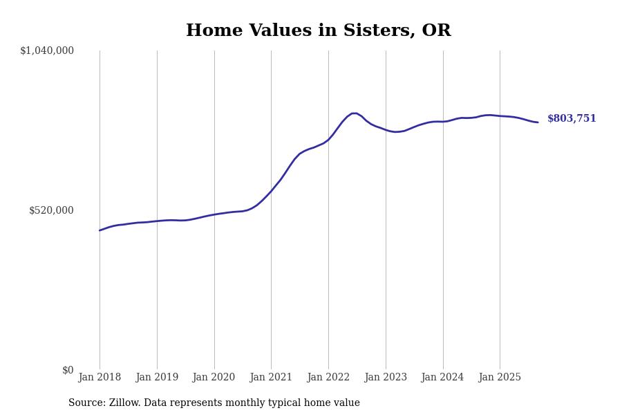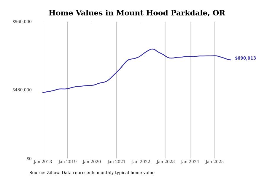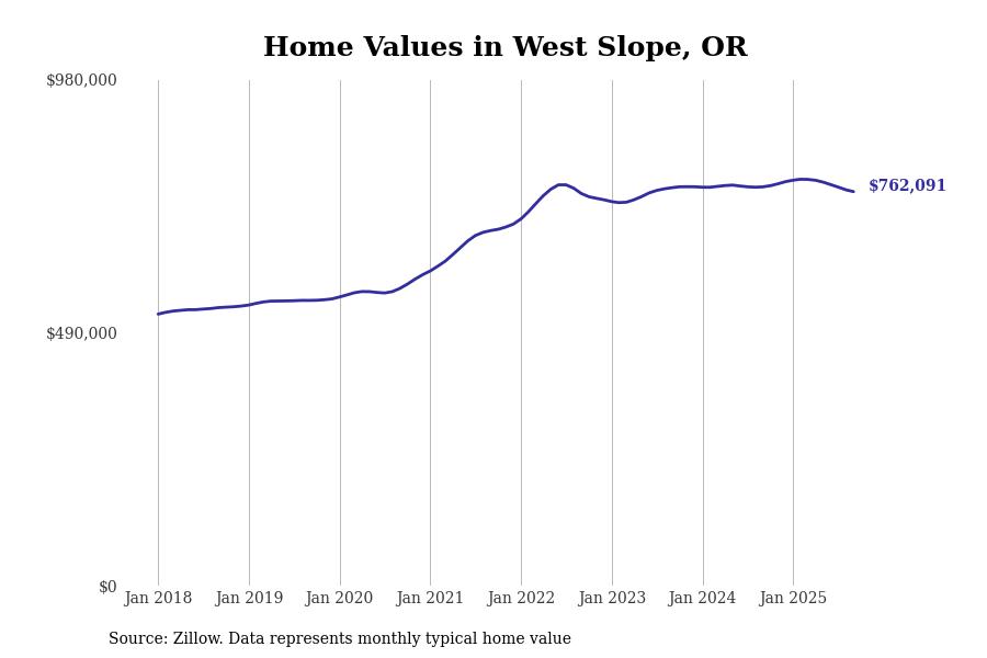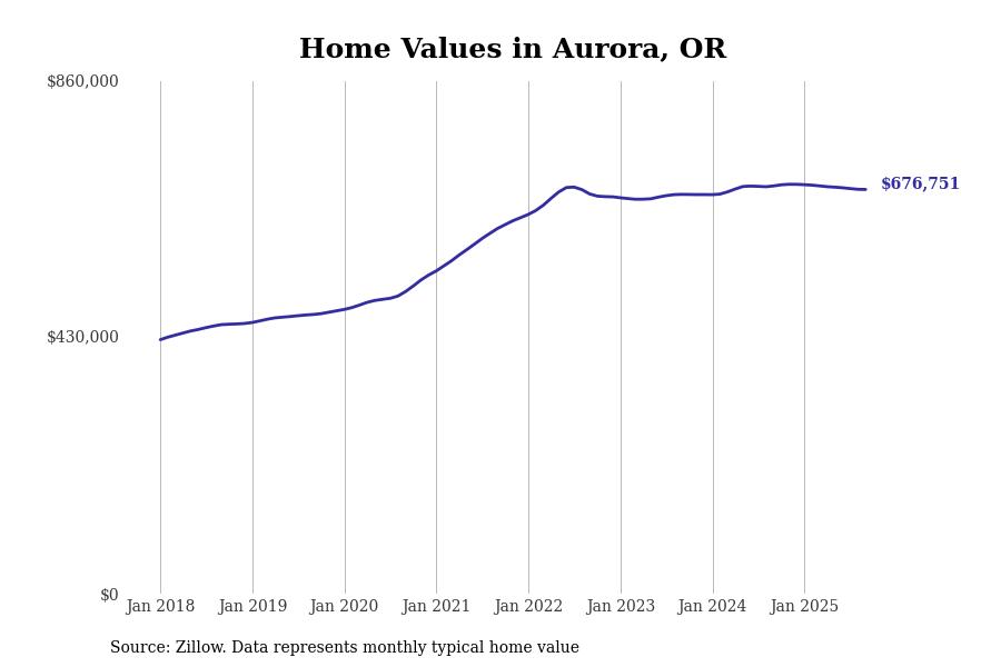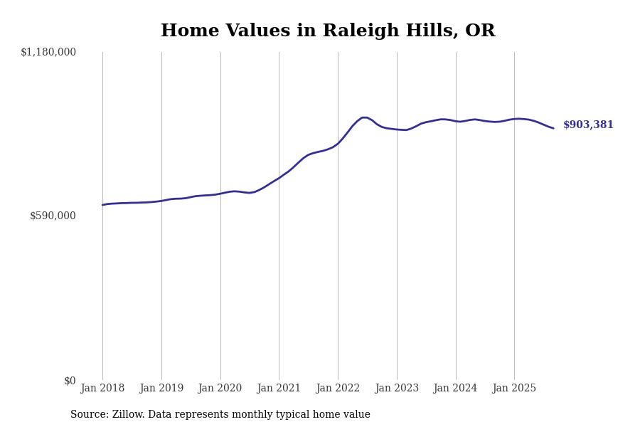 Stacker compiled a list of cities with the most expensive homes in Oregon using data from Zillow. Cities are ranked by the Zillow Home Values Index for all homes as of September 2025. The charts in this story were created automatically using Matplotlib.