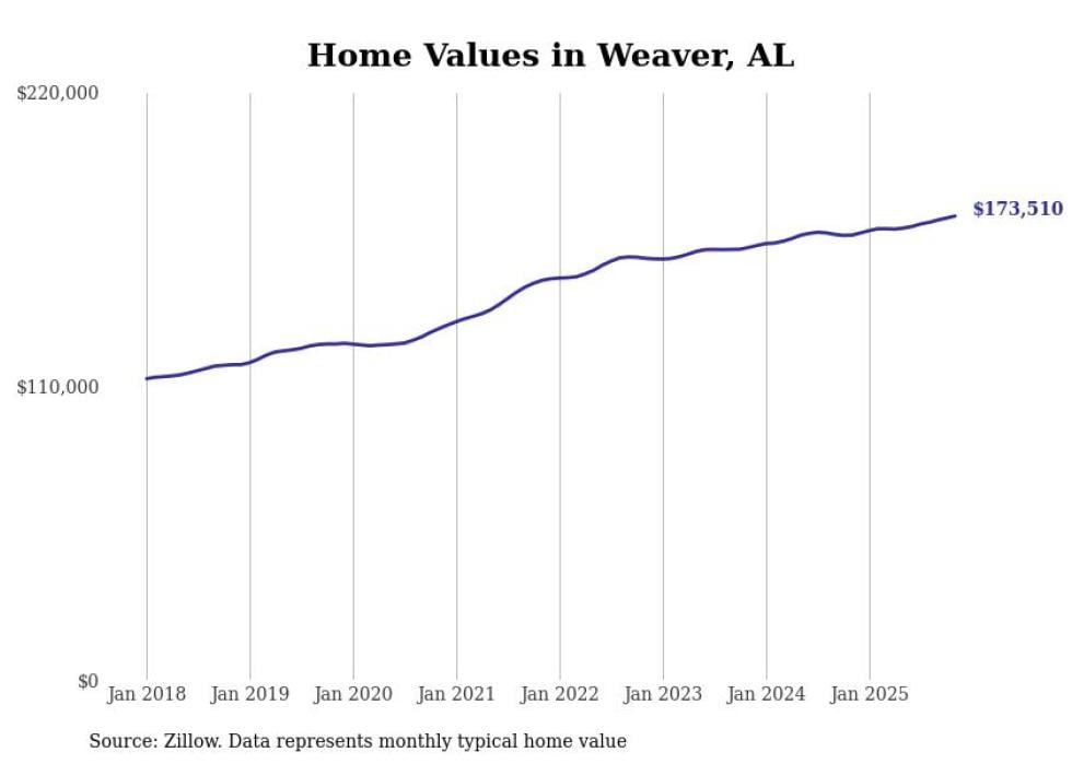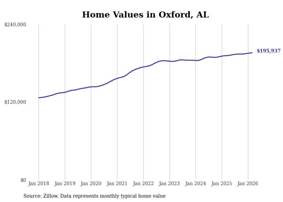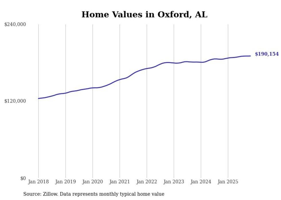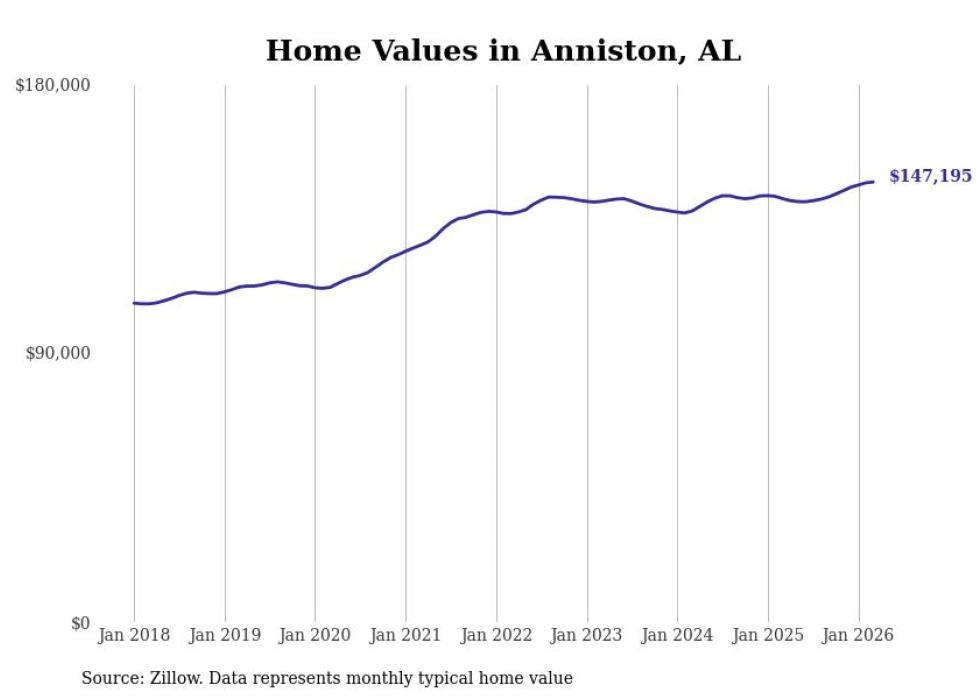 Stacker compiled a list of cities with the most expensive homes in the Anniston-Oxford, AL metro area using data from Zillow. Charts show the monthly typical home value since January 2018.