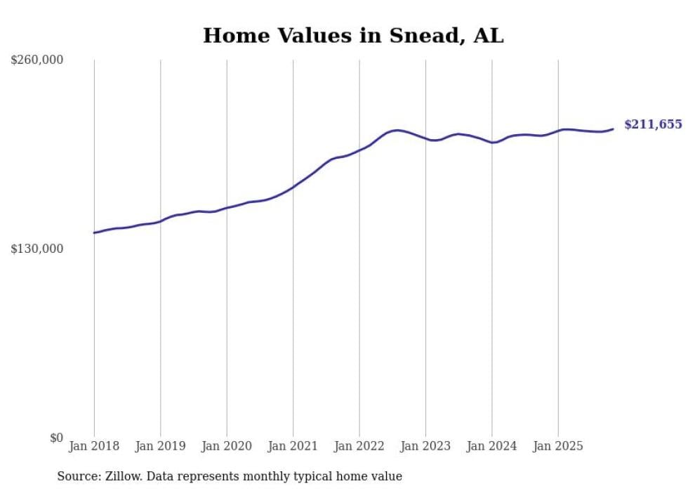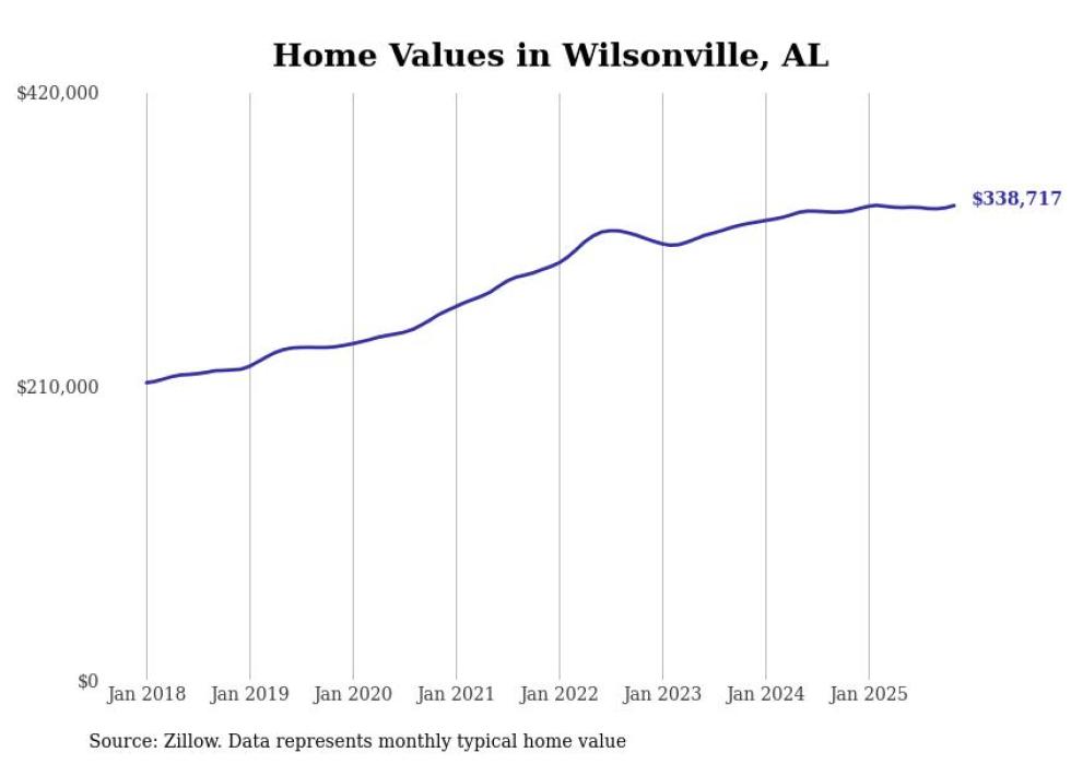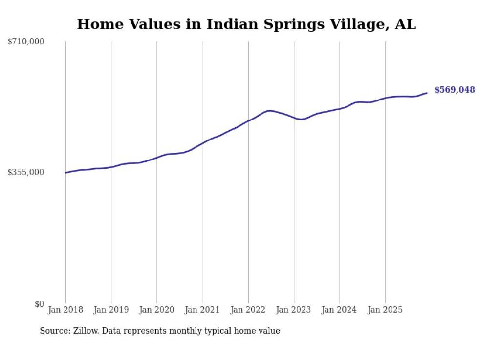 Stacker compiled a list of cities with the most expensive homes in the Birmingham-Hoover, AL metro area using data from Zillow. Charts show the monthly typical home value since January 2018.