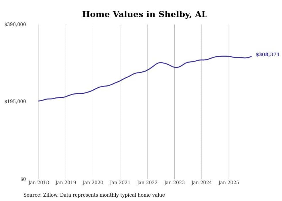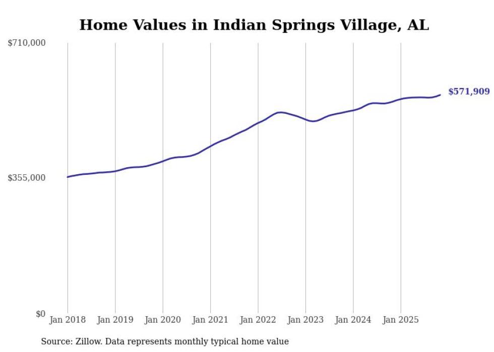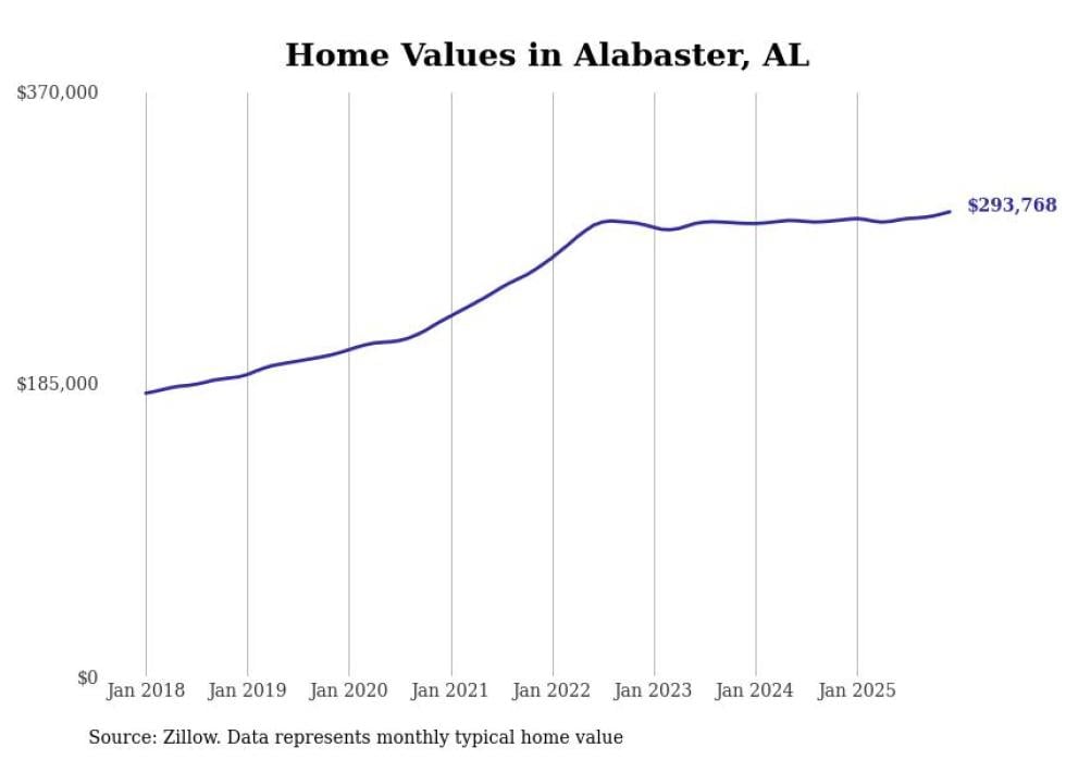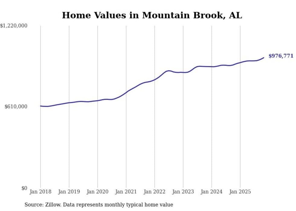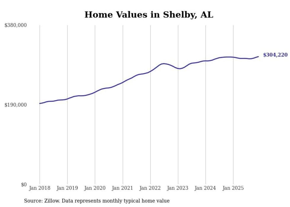 Stacker compiled a list of cities with the most expensive homes in the Birmingham metro area using data from Zillow. Charts show the monthly typical home value since January 2018. Data was available for 78 cities and towns.