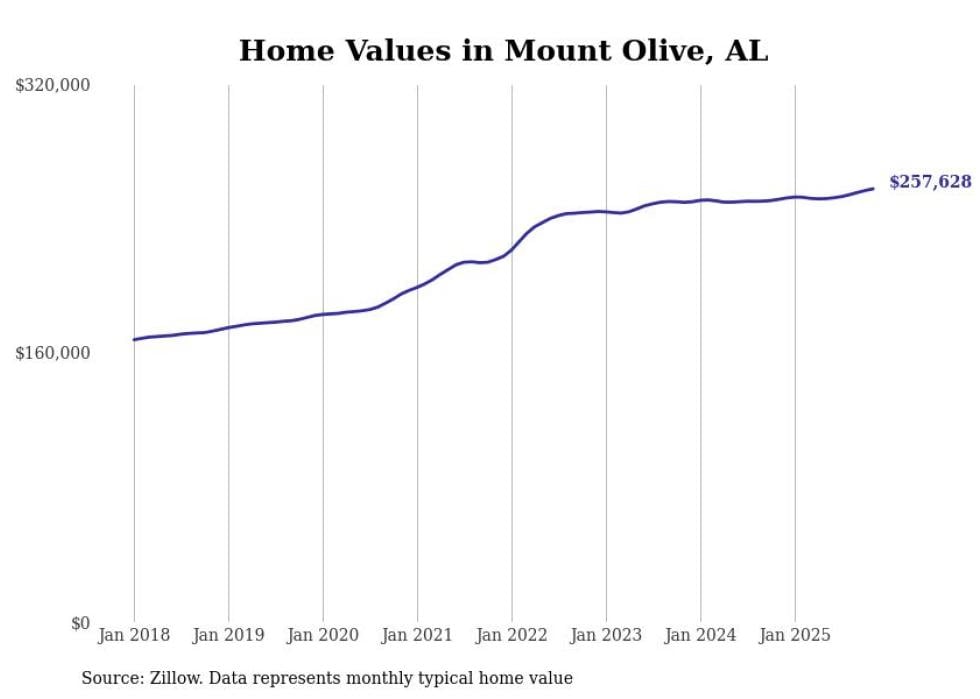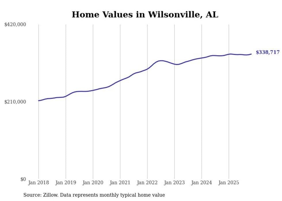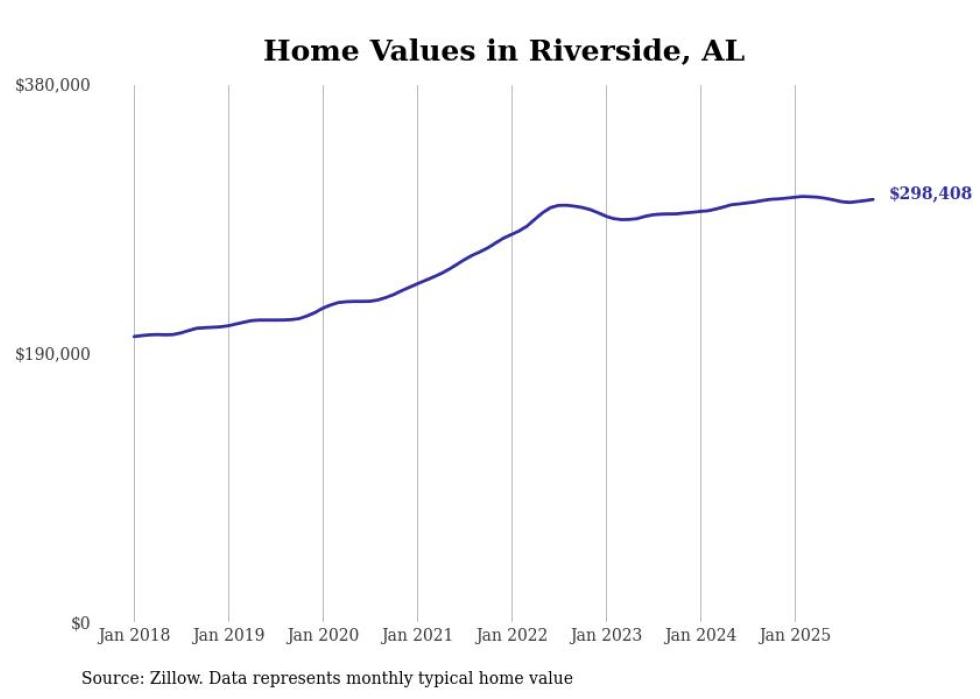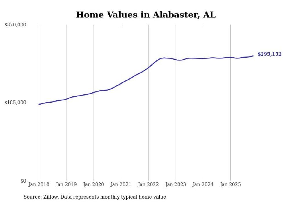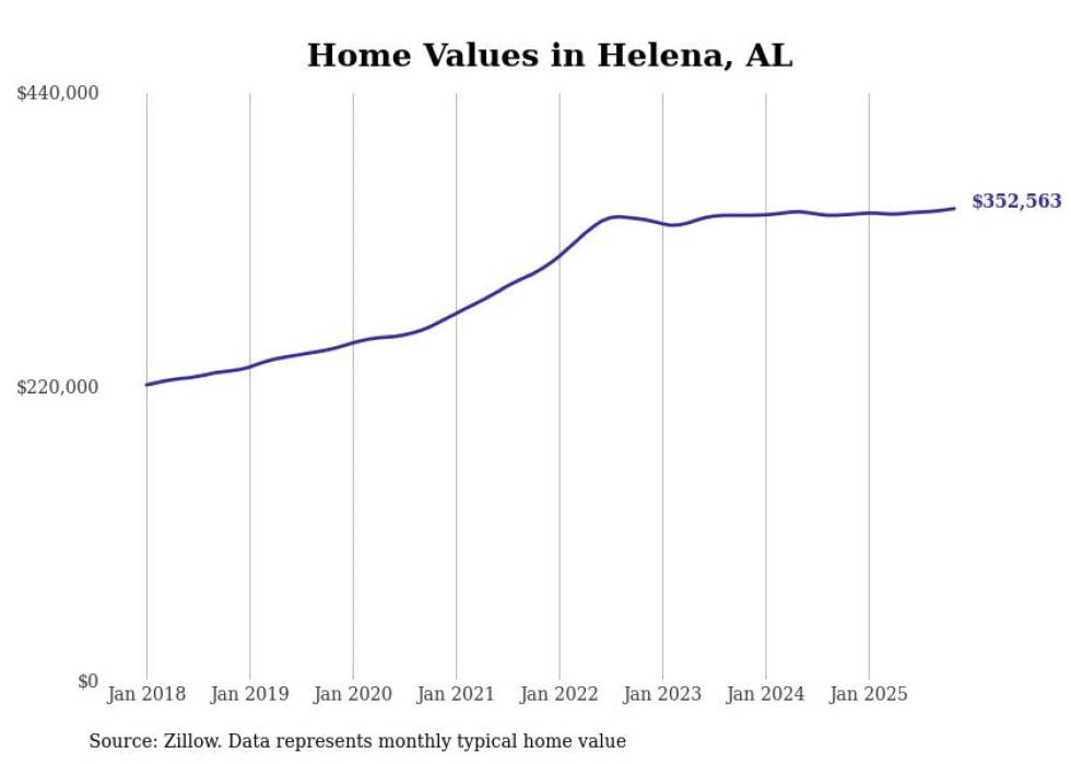 Stacker compiled a list of cities with the most expensive homes in the Birmingham metro area using data from Zillow. Charts show the monthly typical home value since January 2018. Data was available for 78 cities and towns.