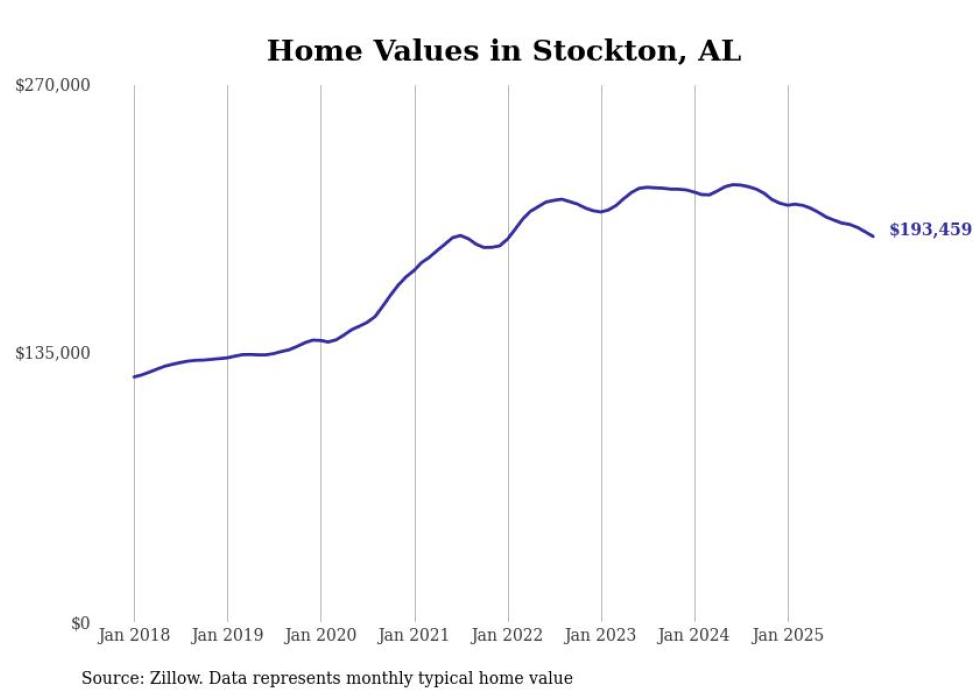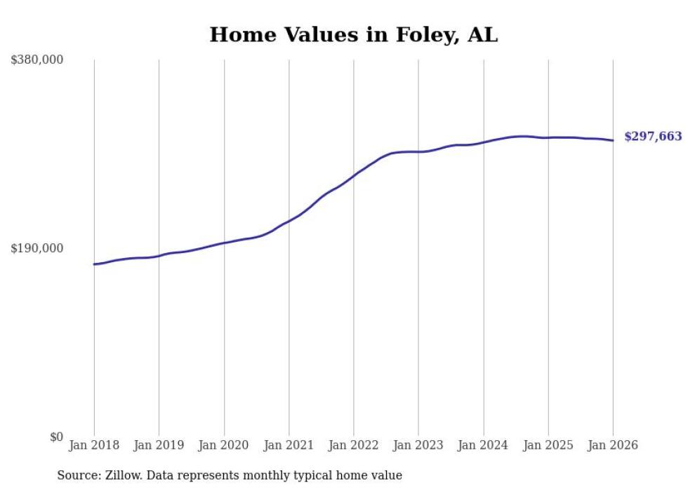 Stacker compiled a list of cities with the most expensive homes in the Daphne-Fairhope-Foley, AL metro area using data from Zillow. Charts show the monthly typical home value since January 2018.