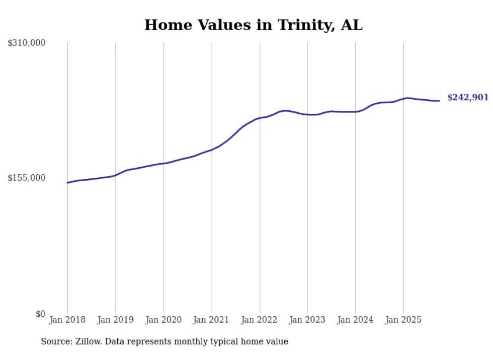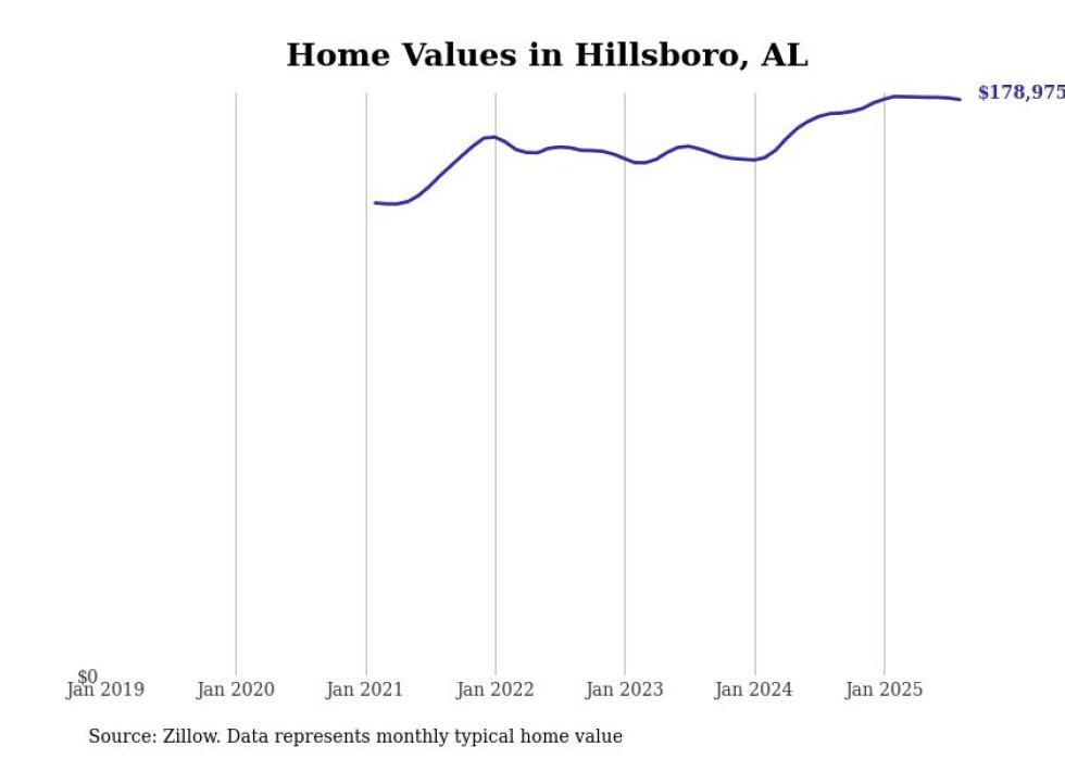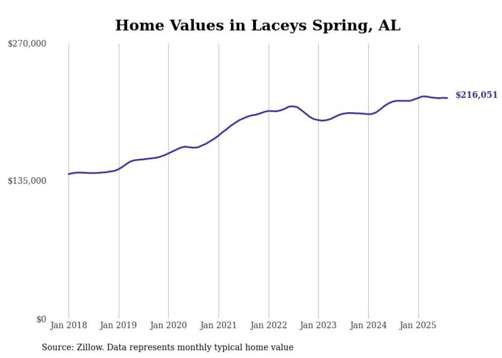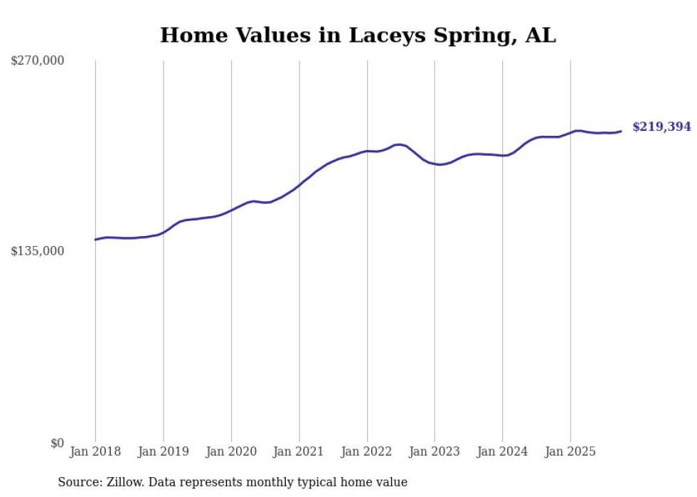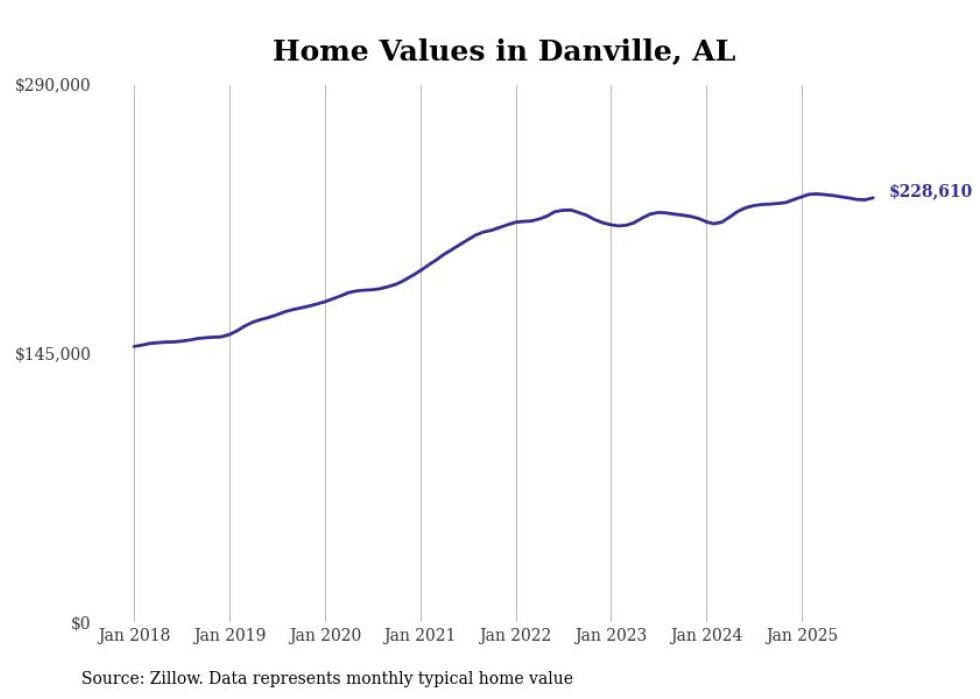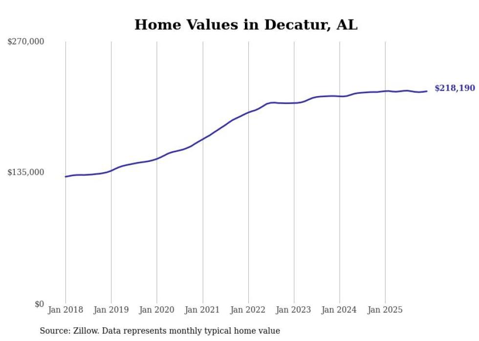 Stacker compiled a list of cities with the most expensive homes in the Decatur, AL metro area using data from Zillow. Charts show the monthly typical home value since January 2018.