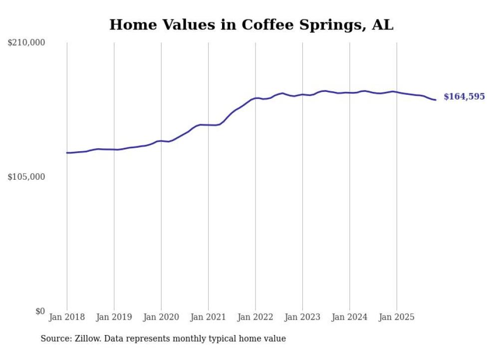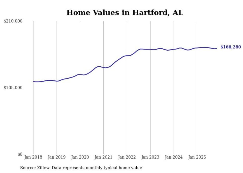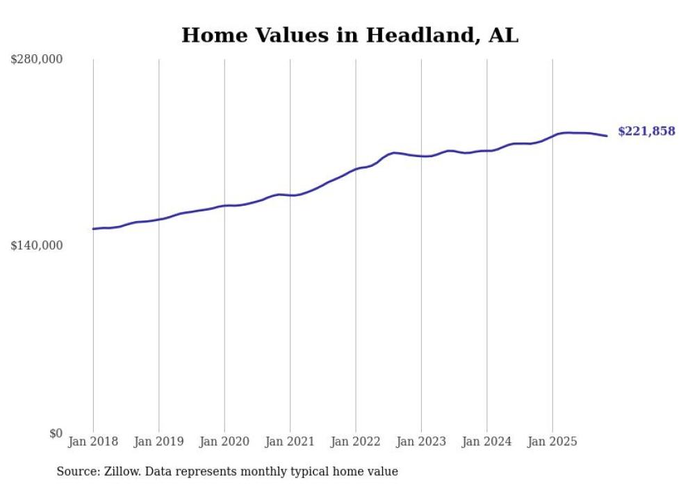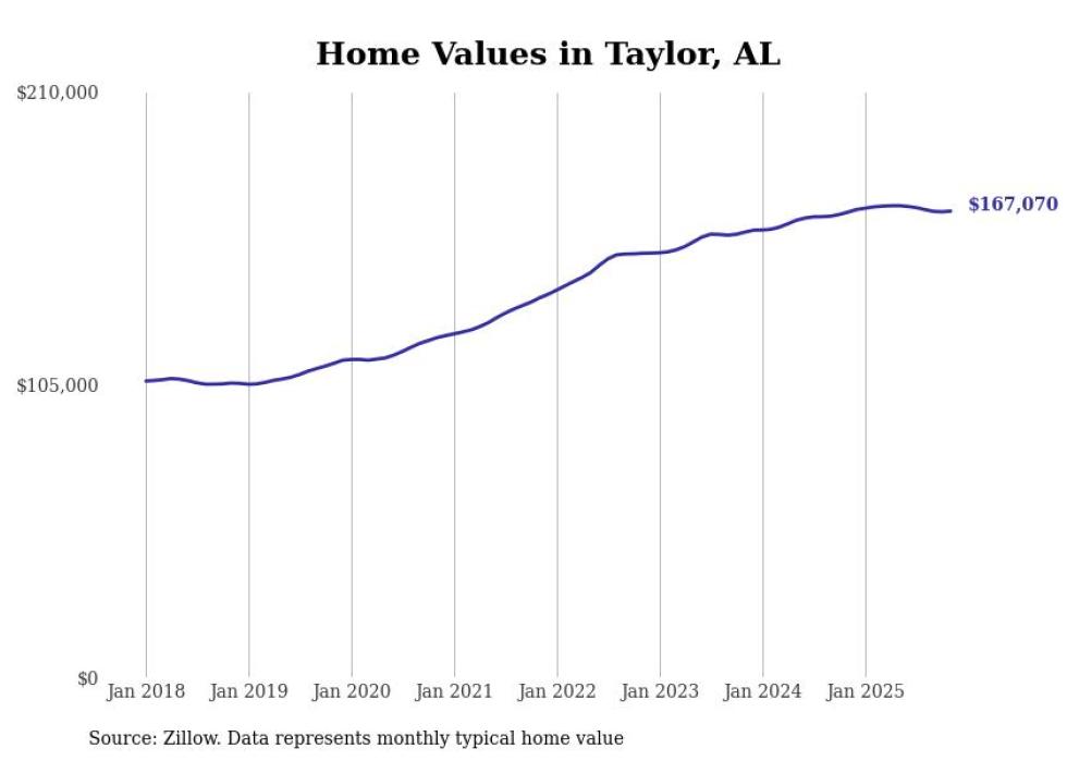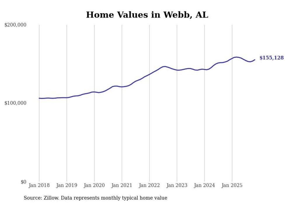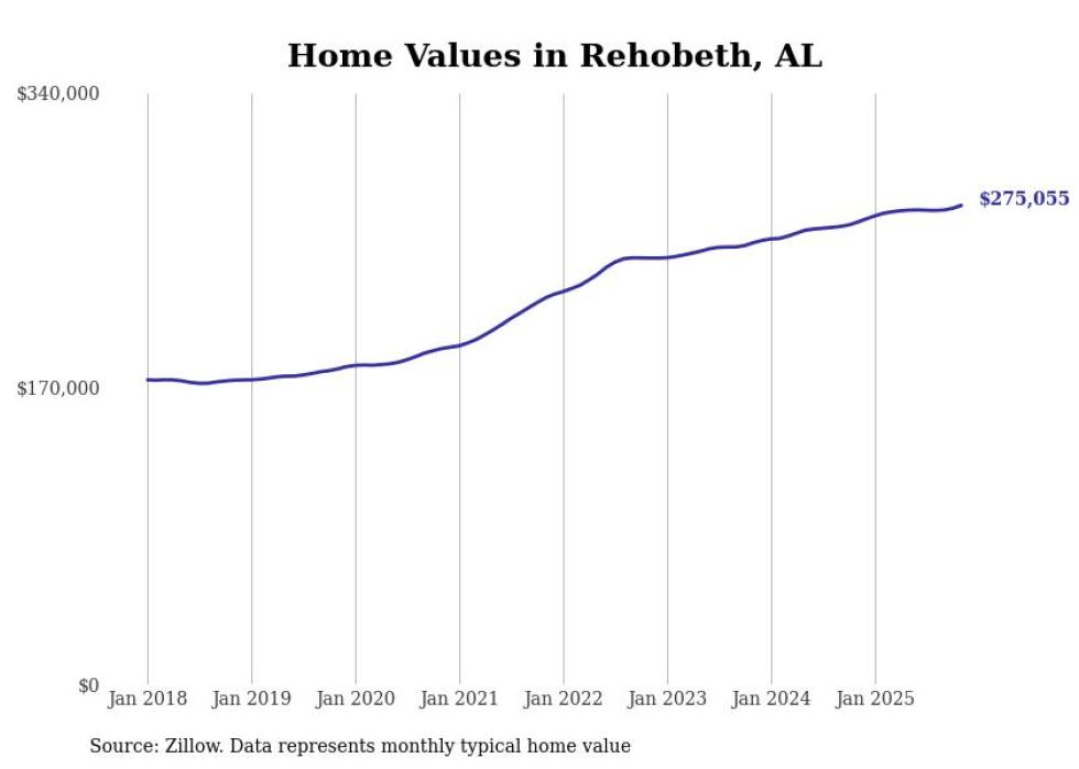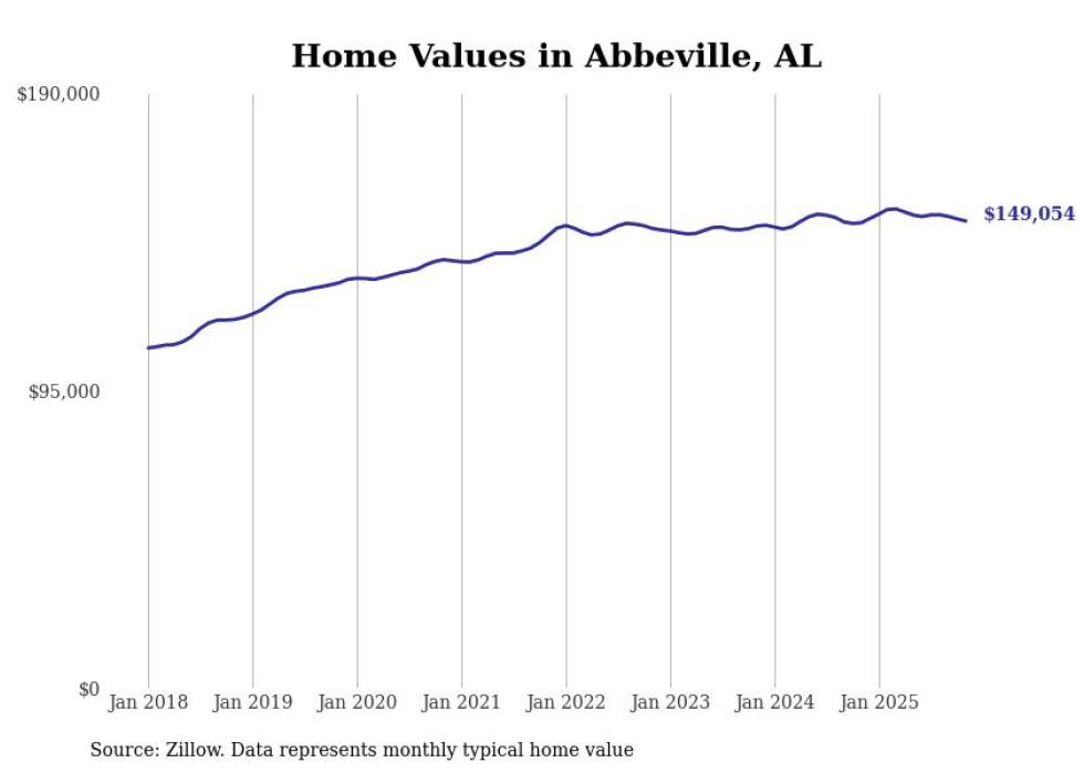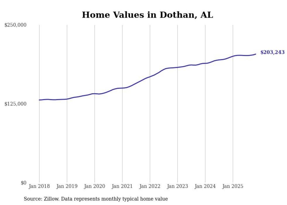 Stacker compiled a list of cities with the most expensive homes in the Dothan, AL metro area using data from Zillow. Charts show the monthly typical home value since January 2018.