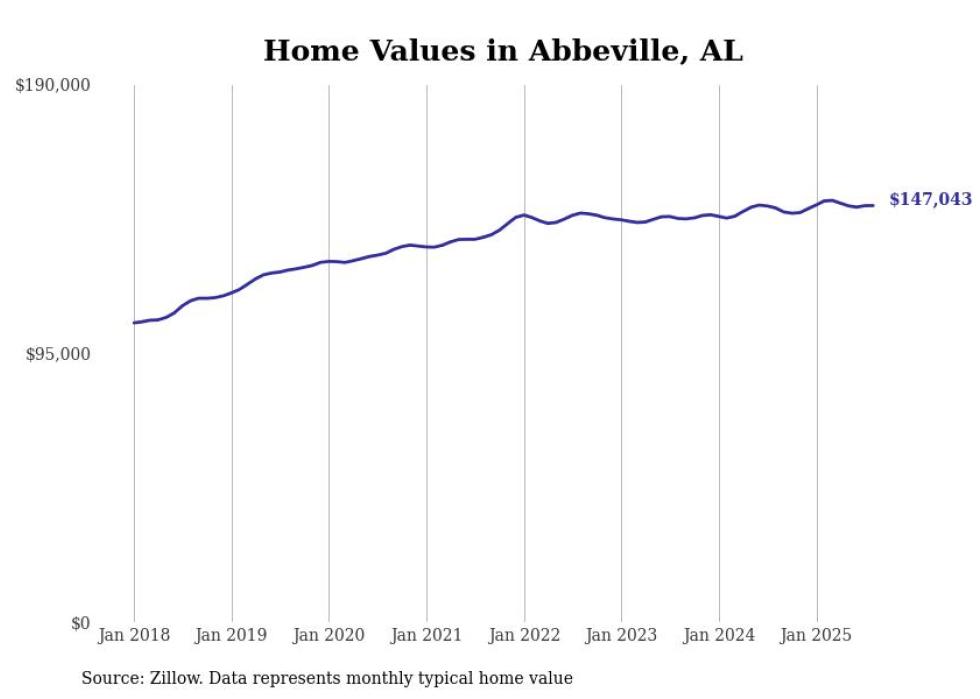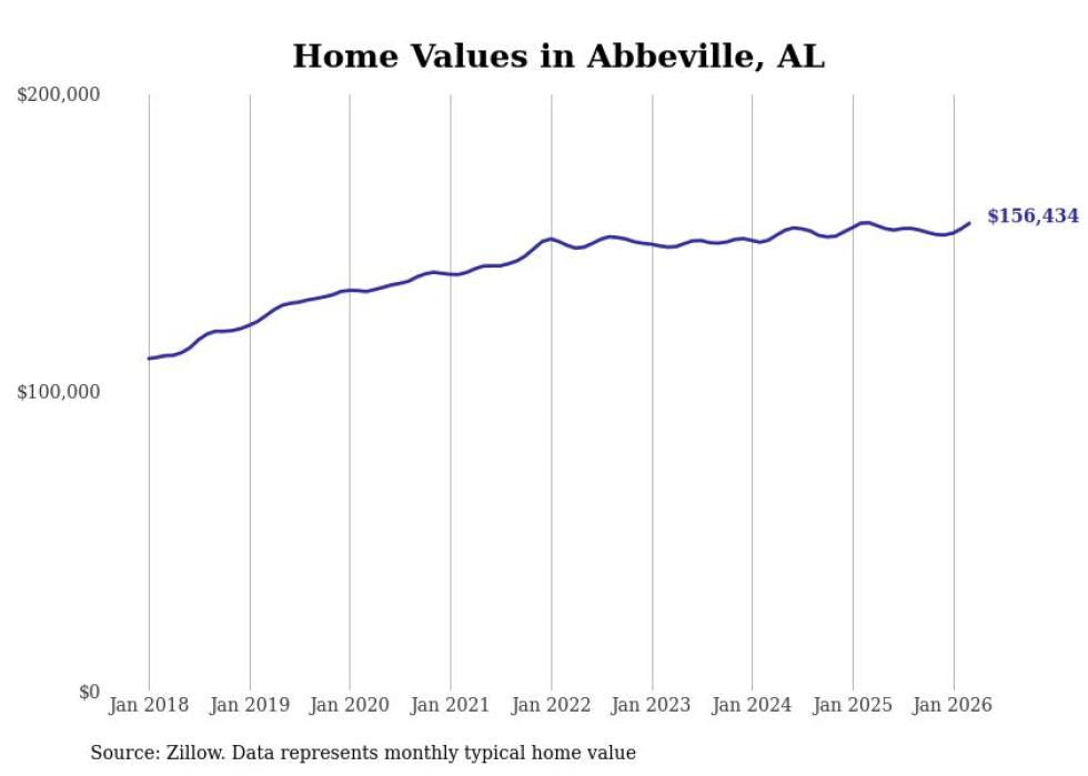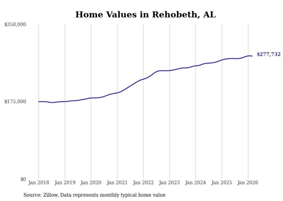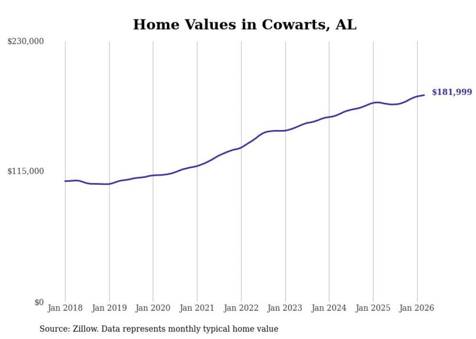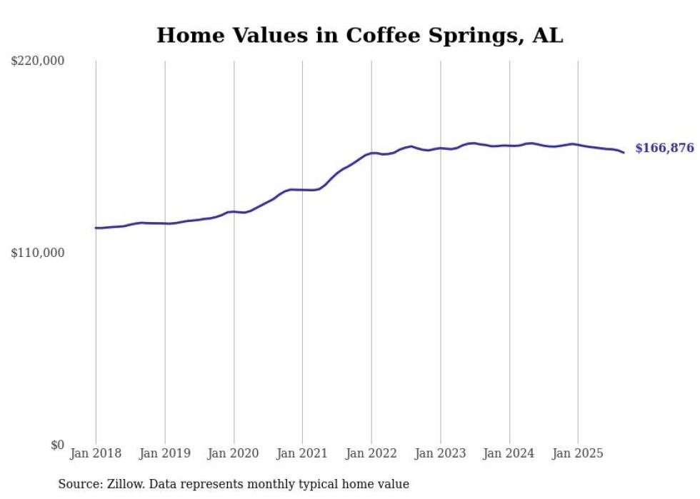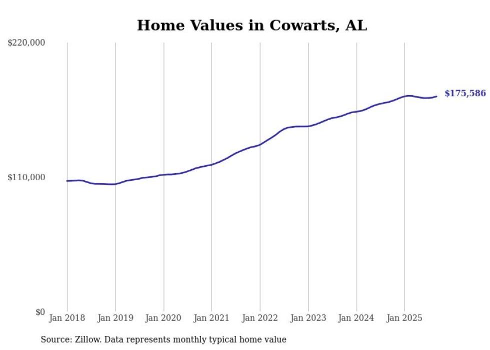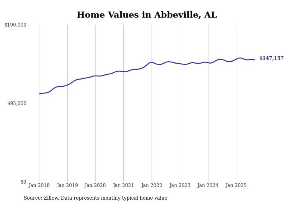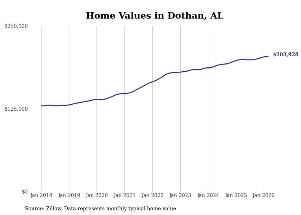 Stacker compiled a list of cities with the most expensive homes in the Dothan metro area using data from Zillow. Charts show the monthly typical home value since January 2018. All 27 cities and towns with data available were included in the list.