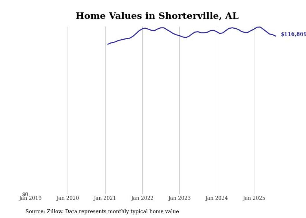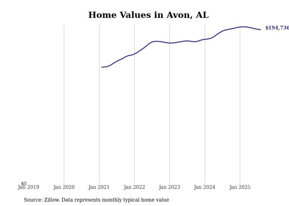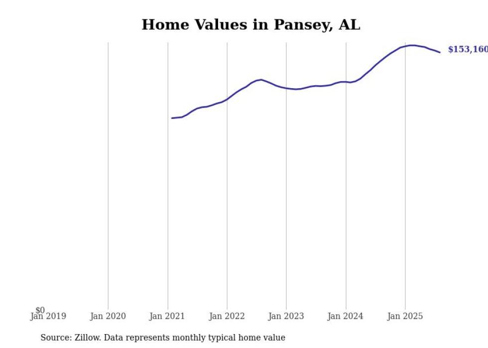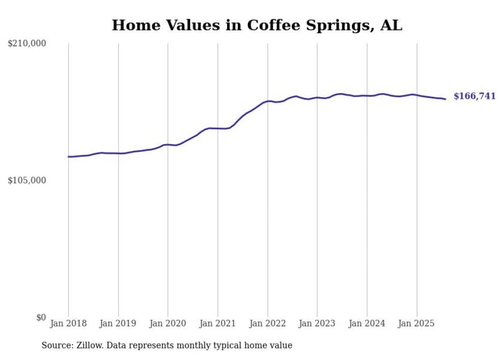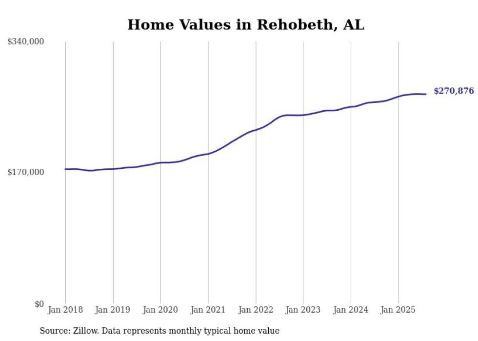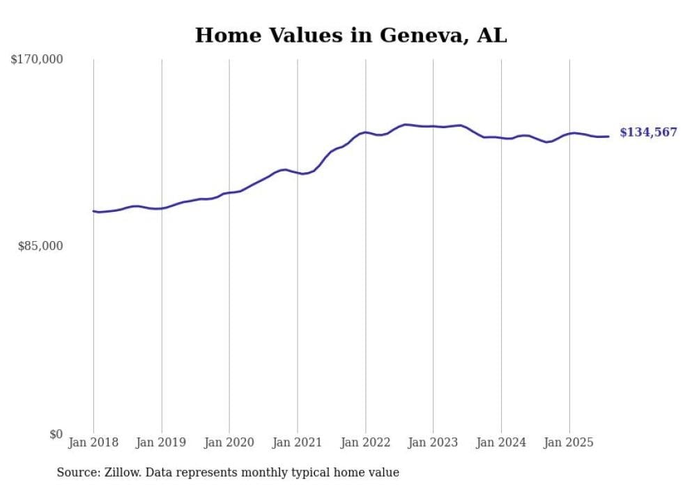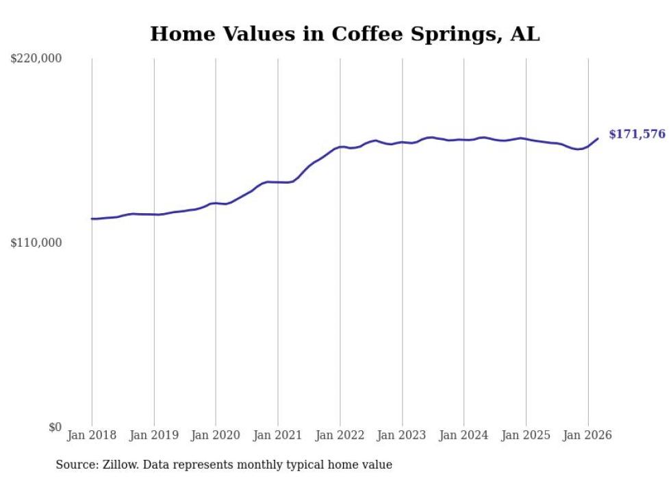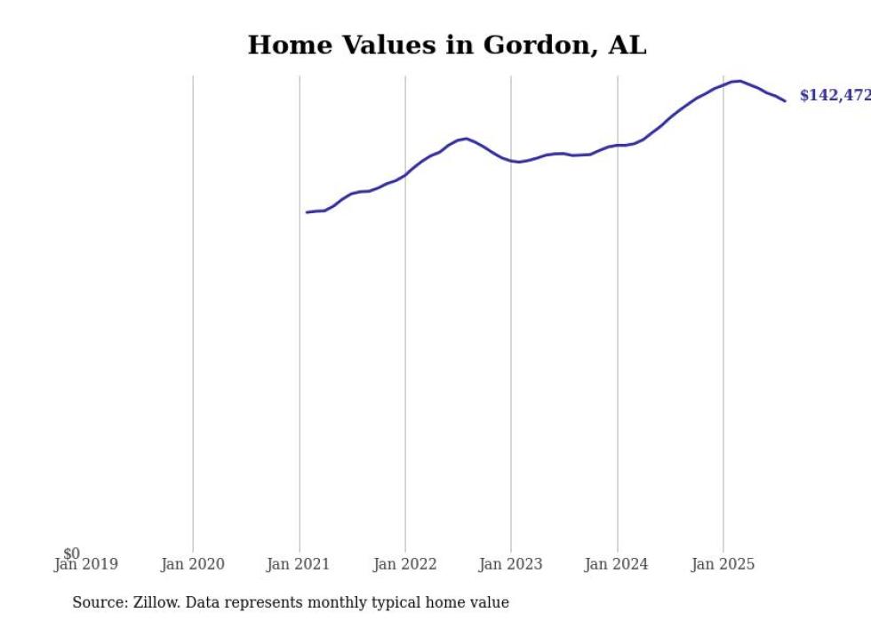 Stacker compiled a list of cities with the most expensive homes in the Dothan metro area using data from Zillow. Charts show the monthly typical home value since January 2018. All 27 cities and towns with data available were included in the list.
