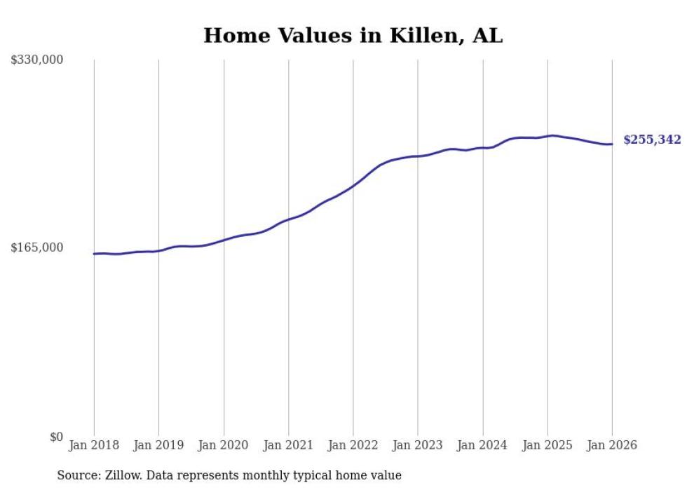 Stacker compiled a list of cities with the most expensive homes in the Florence metro area using data from Zillow. Charts show the monthly typical home value since January 2018. All 12 cities and towns with data available were included in the list.