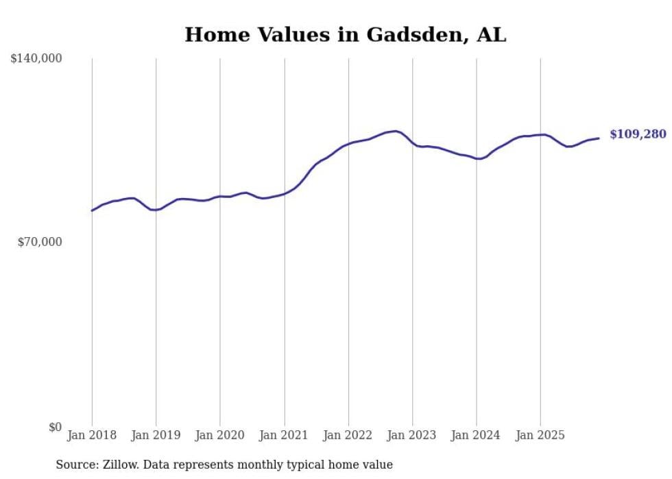 Cities with the fastest-growing home prices in the Gadsden metro area
