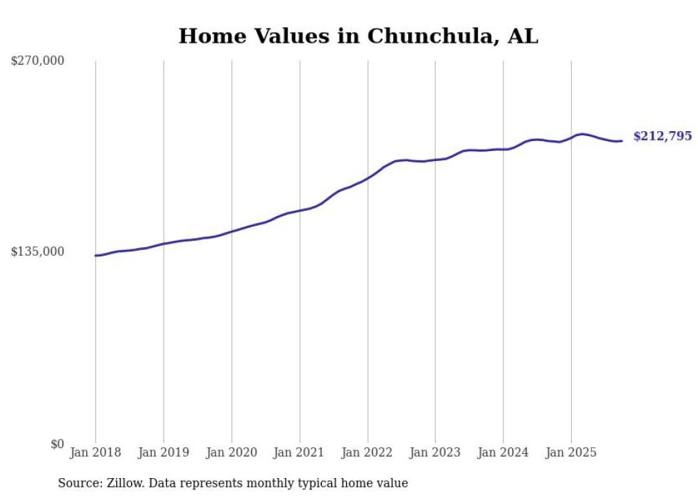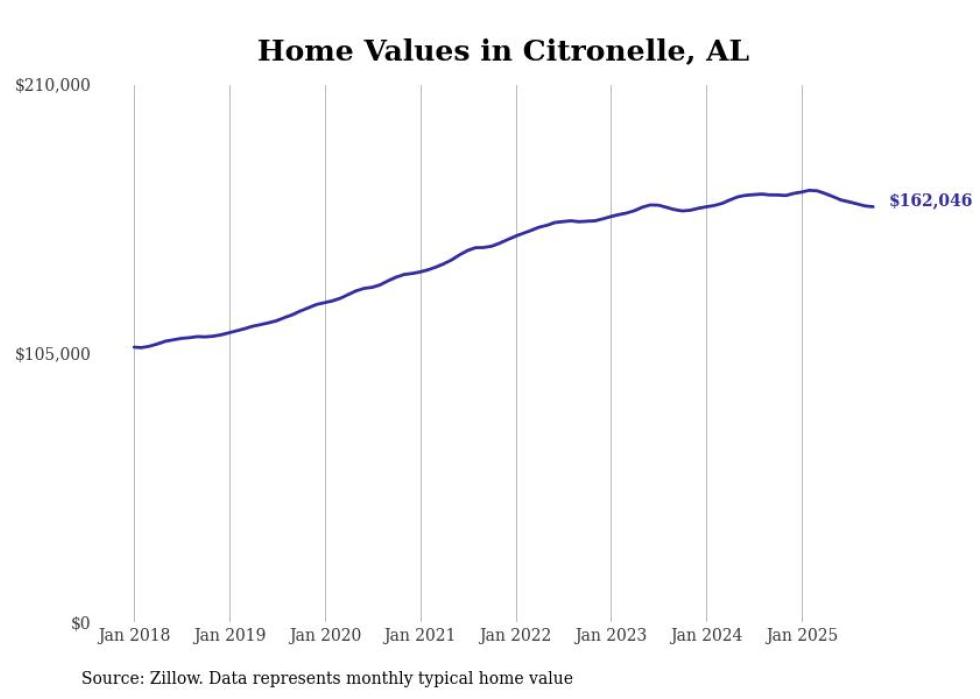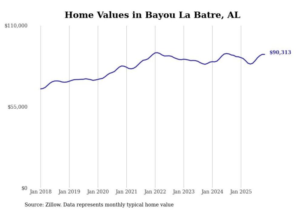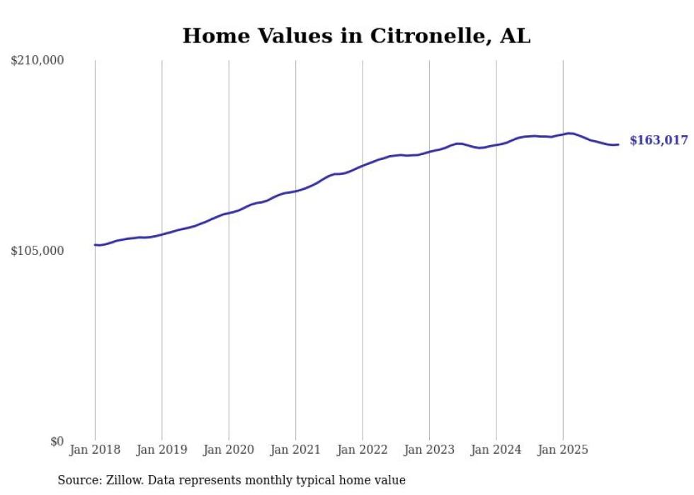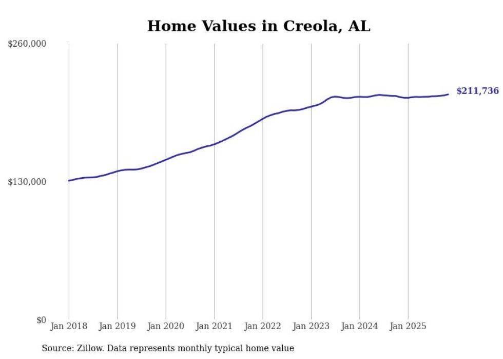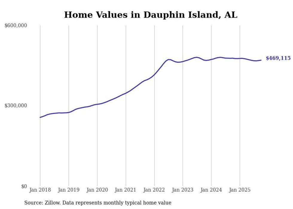 Stacker compiled a list of cities with the most expensive homes in the Mobile, AL metro area using data from Zillow. Charts show the monthly typical home value since January 2018.