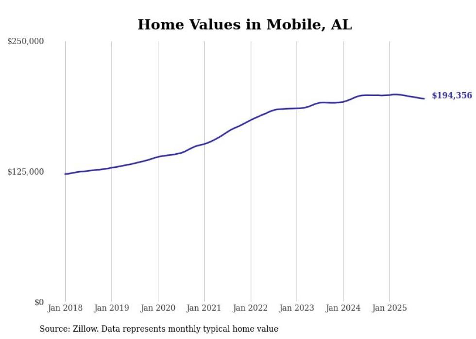 Cities with the fastest-growing home prices in the Mobile metro area