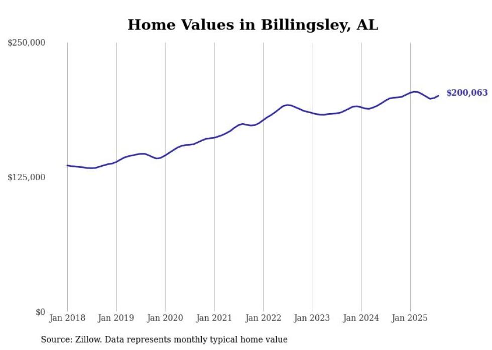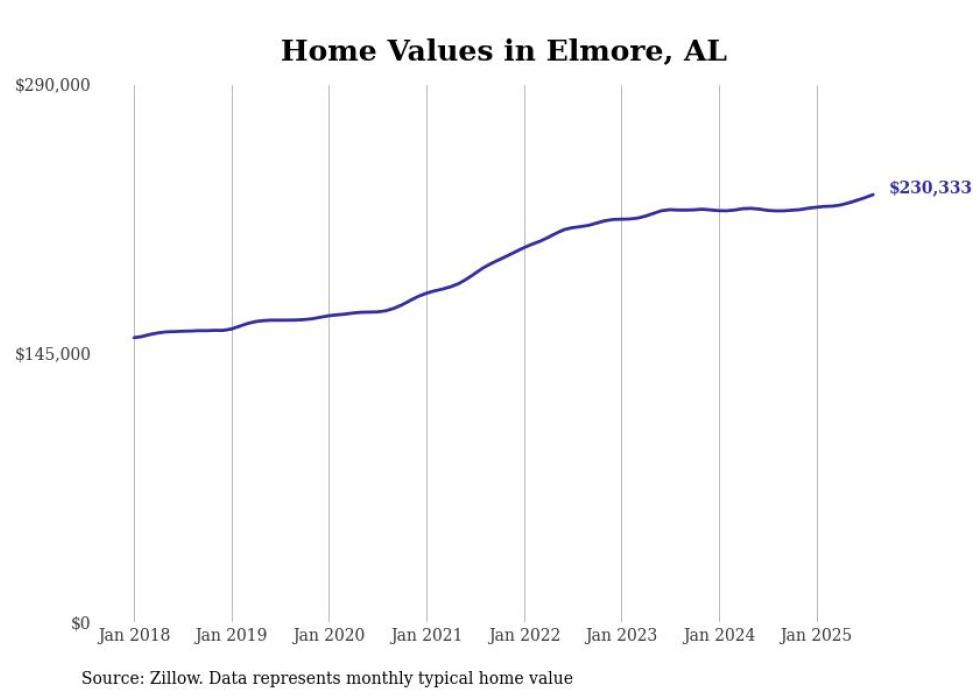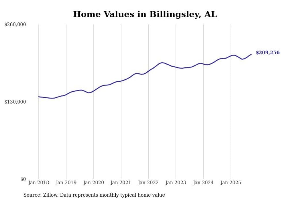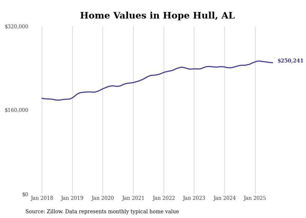 Cities with the fastest-growing home prices in the Montgomery metro area