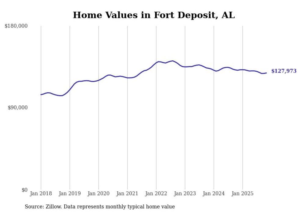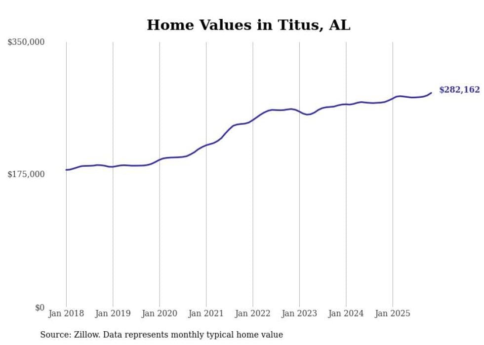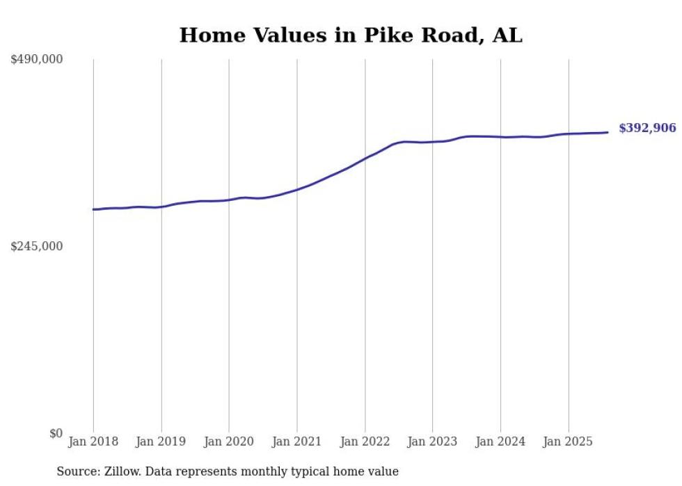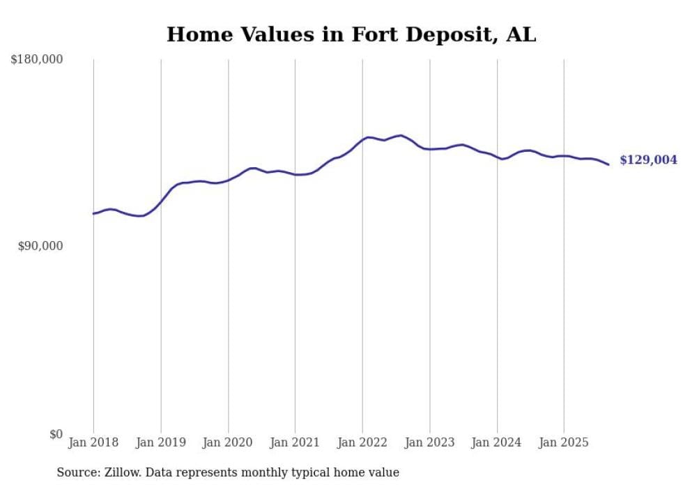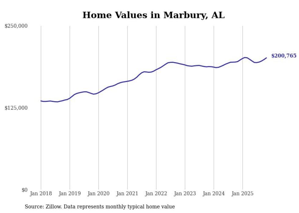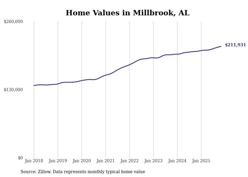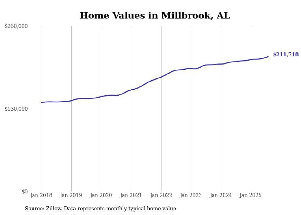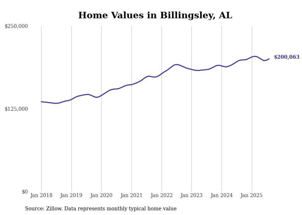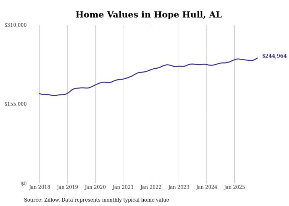Stacker compiled a list of cities with the most expensive homes in the Montgomery metro area using data from Zillow. Charts show the monthly typical home value since January 2018. All 21 cities and towns with data available were included in the list.