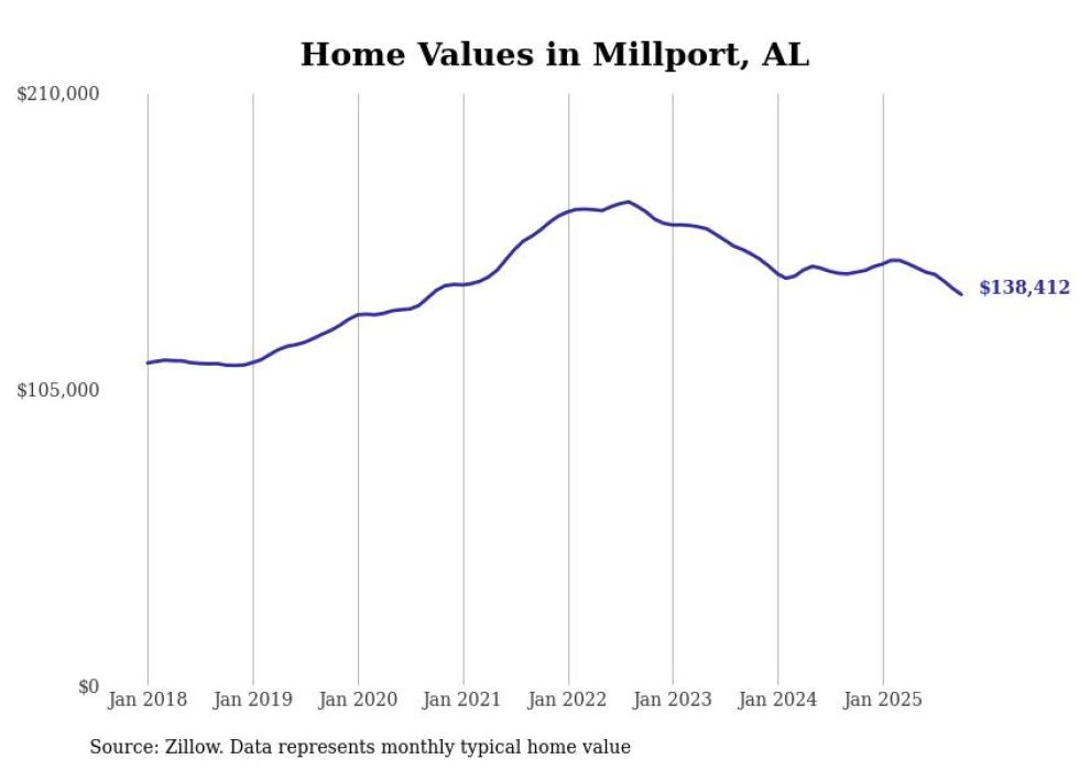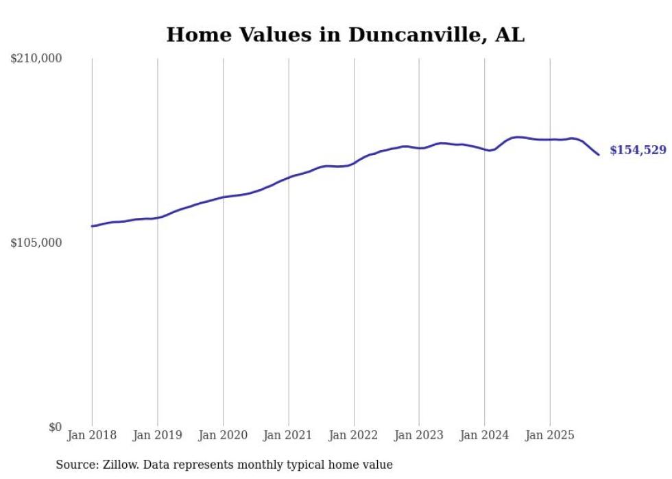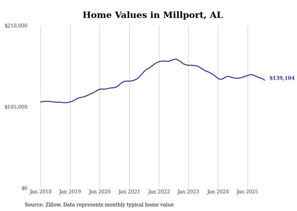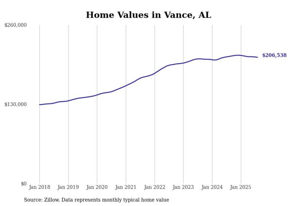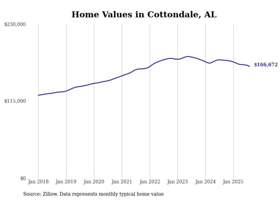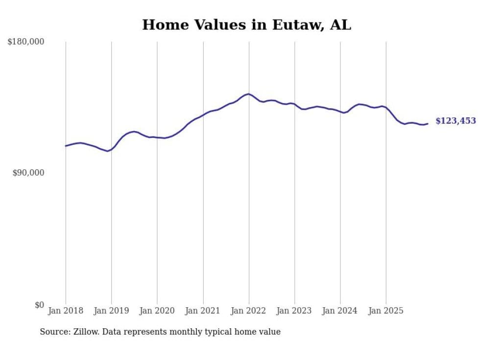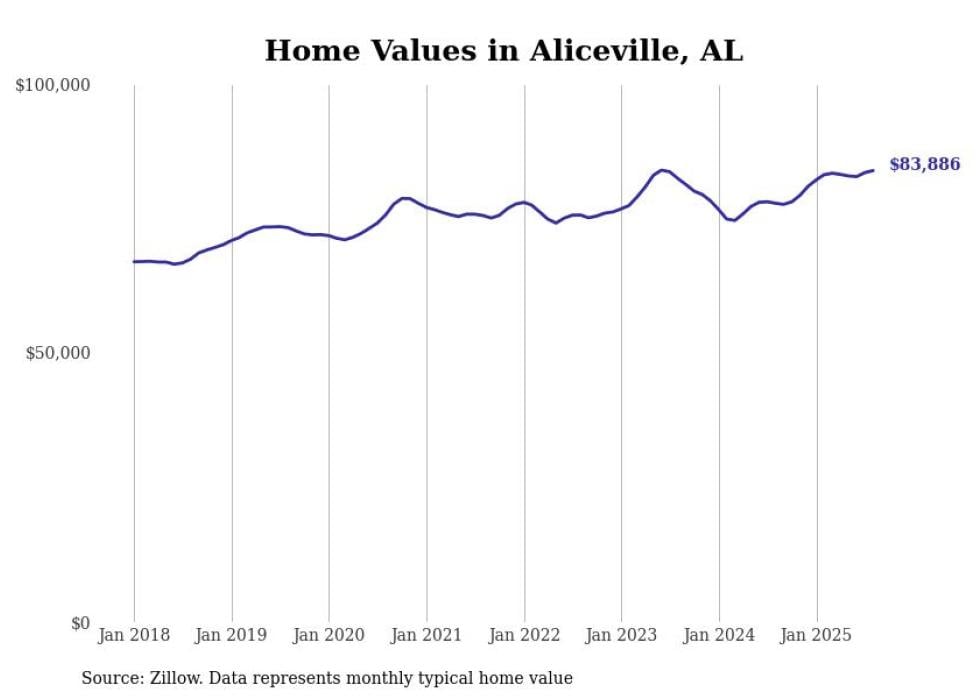 Stacker compiled a list of cities with the most expensive homes in the Tuscaloosa, AL metro area using data from Zillow. Charts show the monthly typical home value since January 2018.