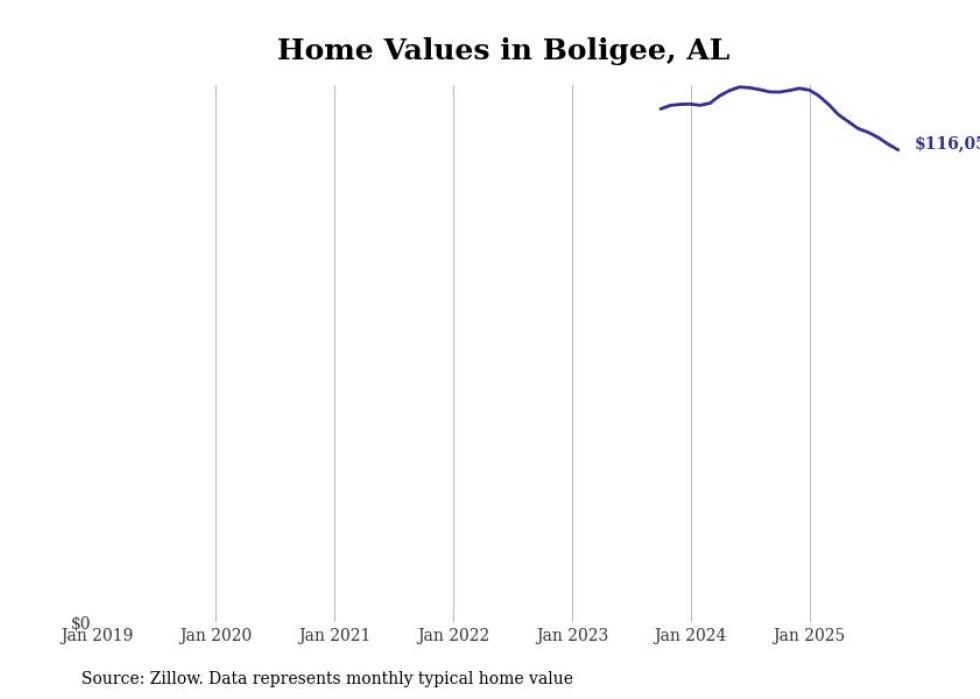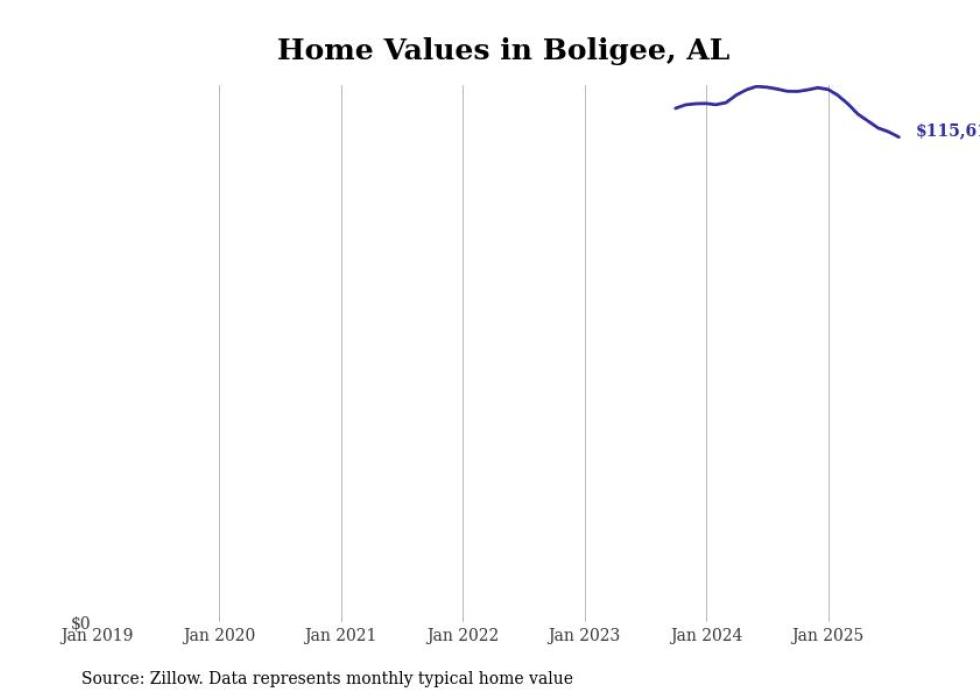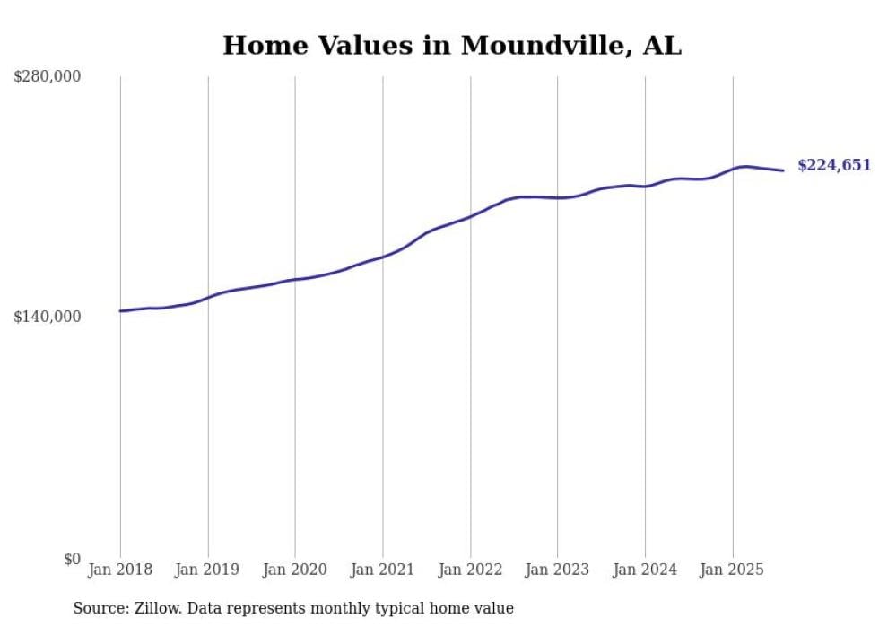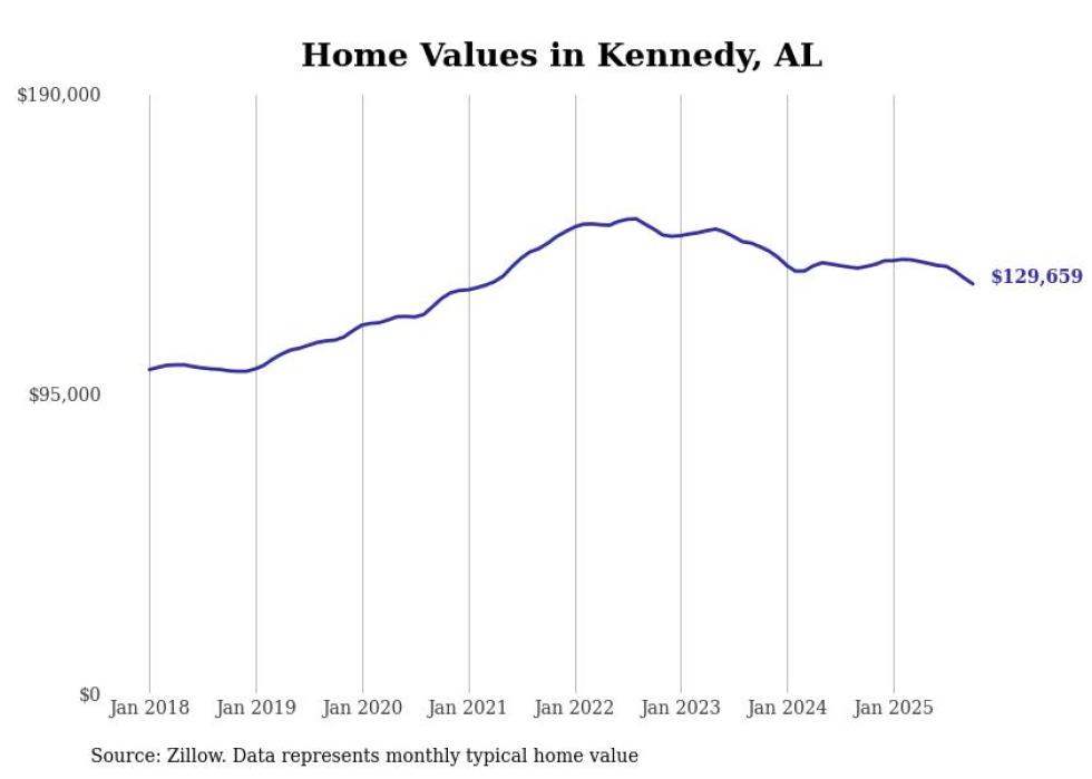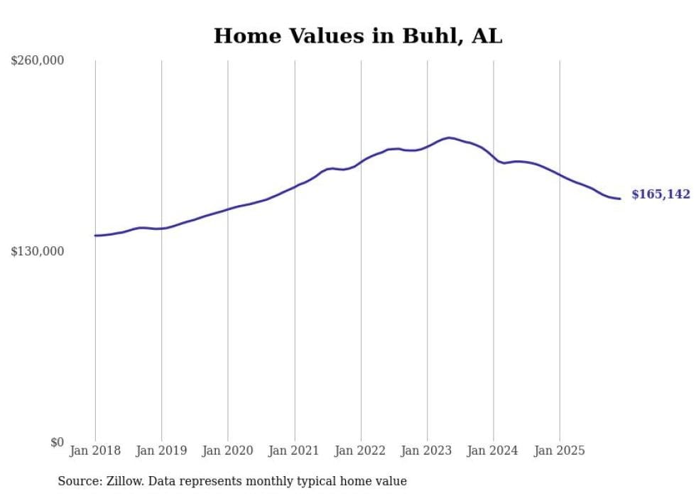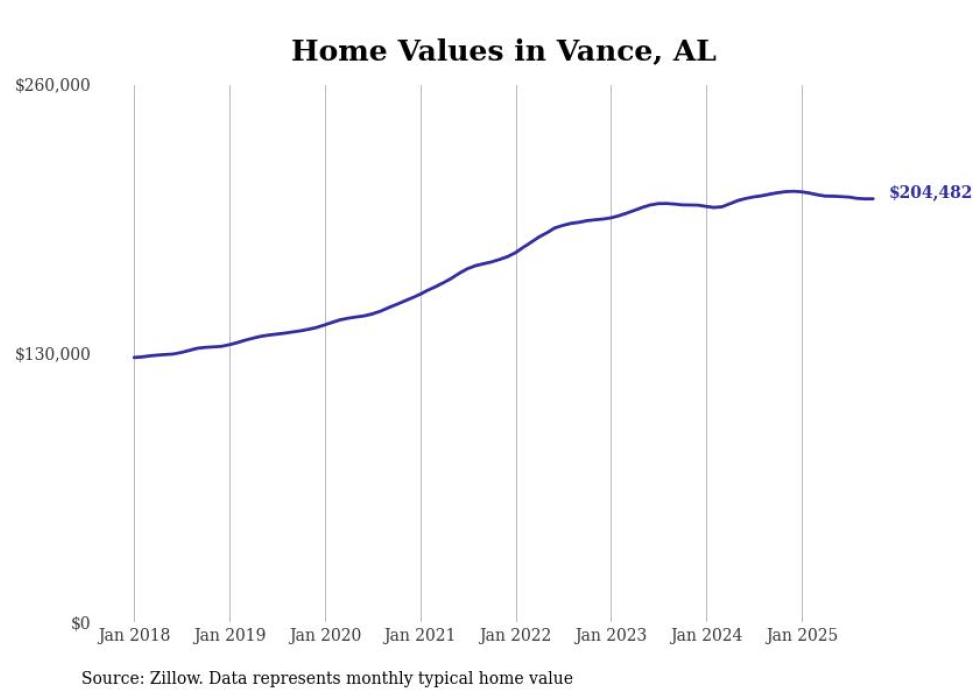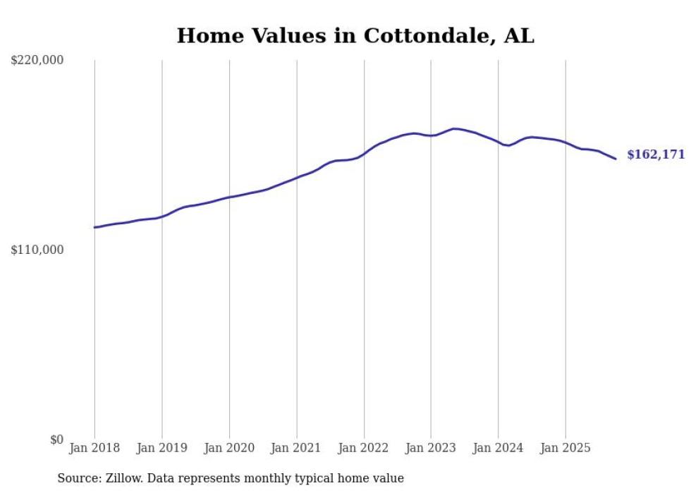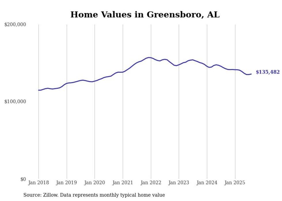 Stacker compiled a list of cities with the most expensive homes in the Tuscaloosa, AL metro area using data from Zillow. Charts show the monthly typical home value since January 2018.