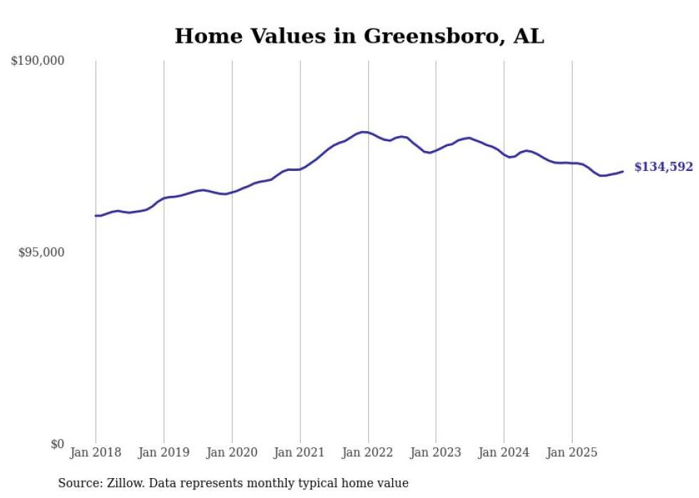 Cities with the fastest-growing home prices in the Tuscaloosa metro area