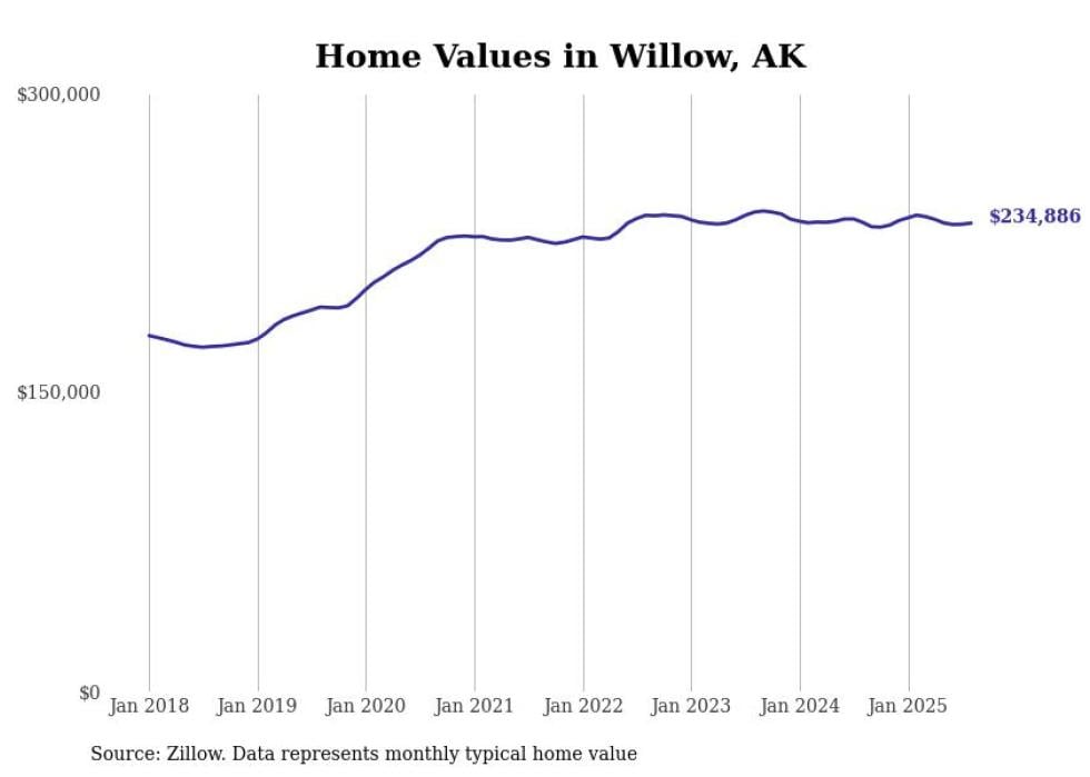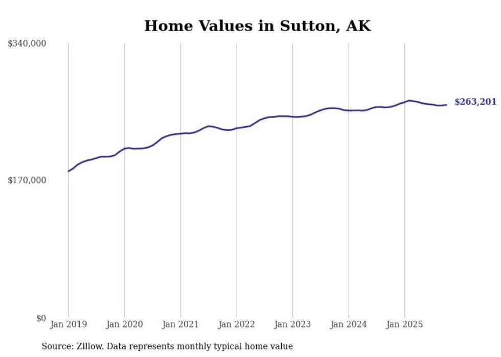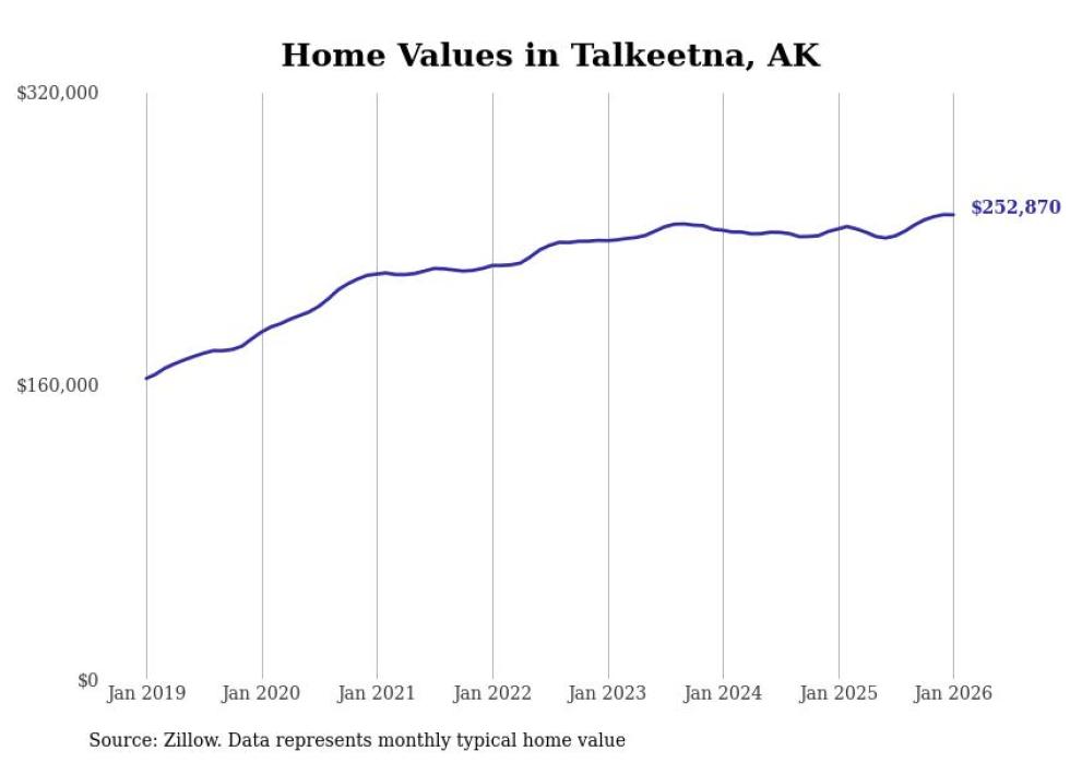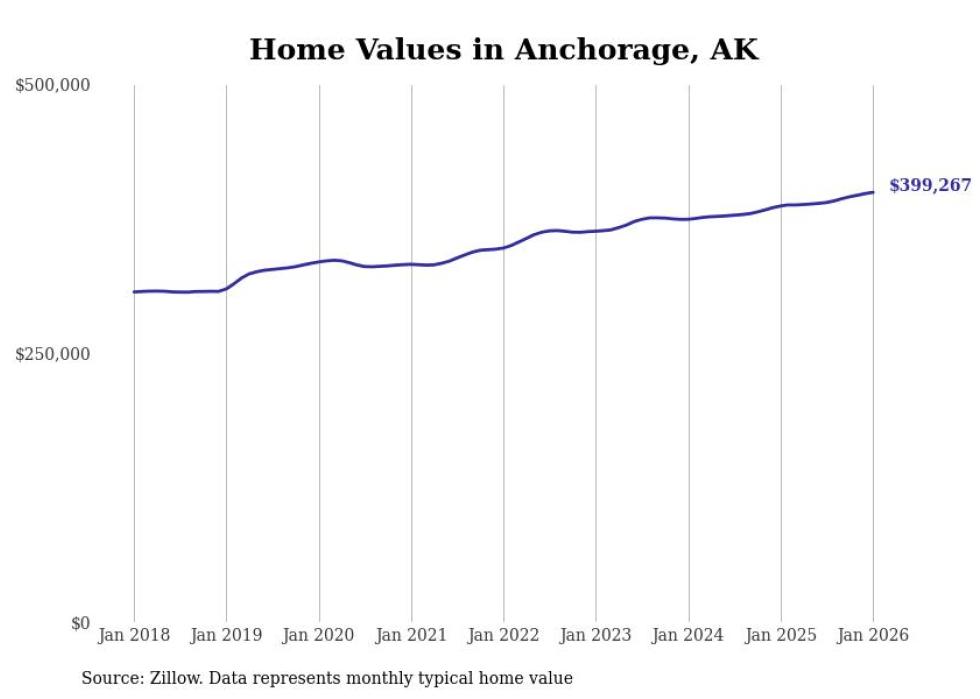 Stacker compiled a list of cities with the most expensive homes in the Anchorage metro area using data from Zillow. Charts show the monthly typical home value since January 2018. All 9 cities and towns with data available were included in the list.