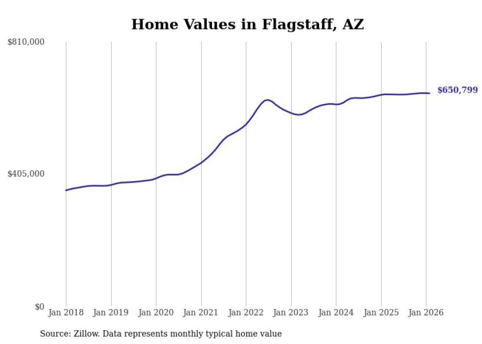 Stacker compiled a list of cities with the most expensive homes in the Flagstaff metro area using data from Zillow. Charts show the monthly typical home value since January 2018. All 10 cities and towns with data available were included in the list.