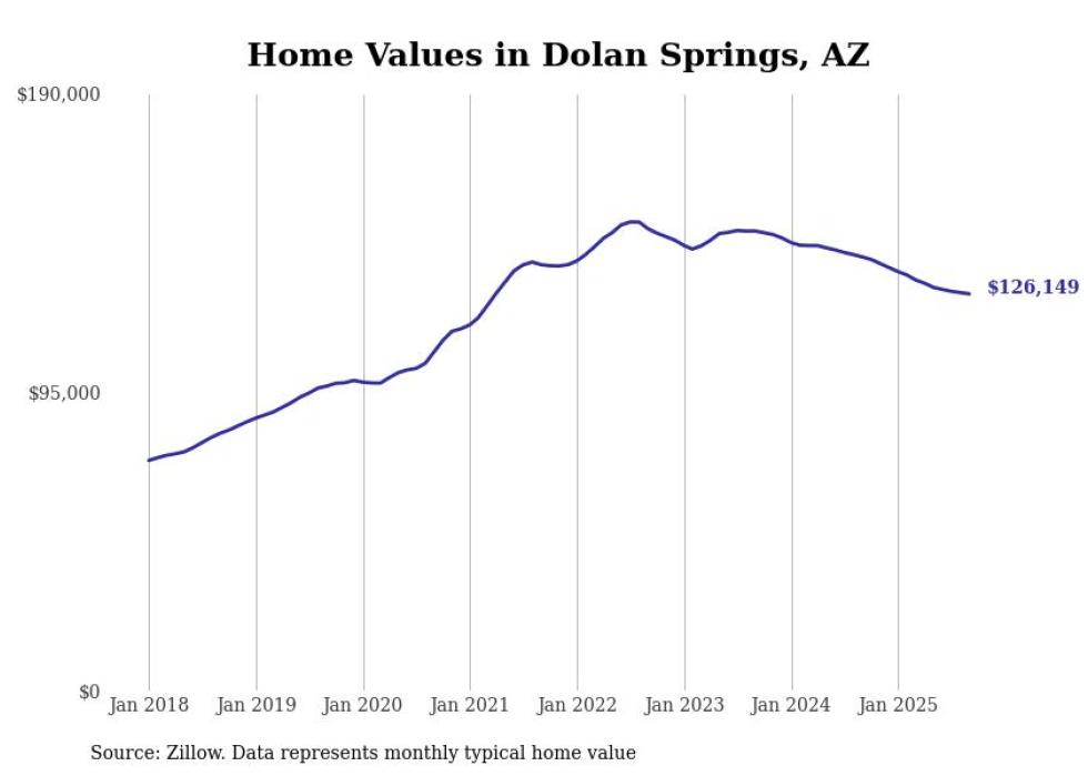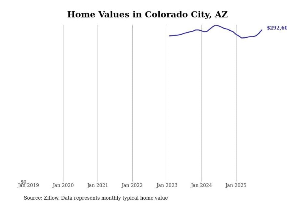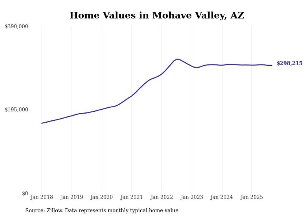 Stacker compiled a list of cities with the most expensive homes in the Lake Havasu City-Kingman, AZ metro area using data from Zillow. Charts show the monthly typical home value since January 2018.