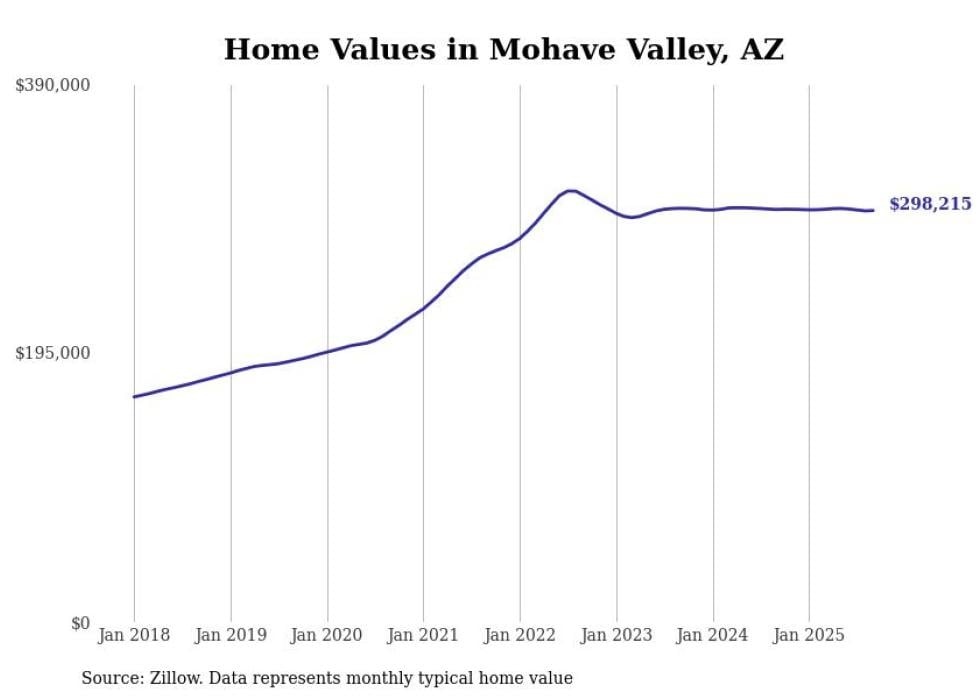 Stacker compiled a list of cities with the most expensive homes in the Lake Havasu City metro area using data from Zillow. Charts show the monthly typical home value since January 2018. All 10 cities and towns with data available were included in the list.