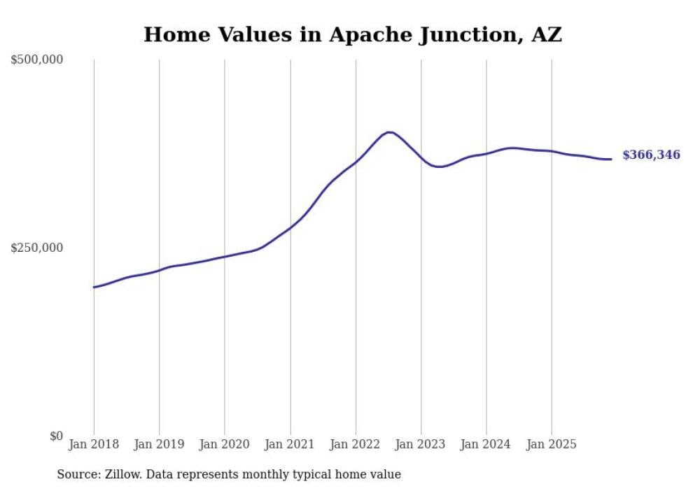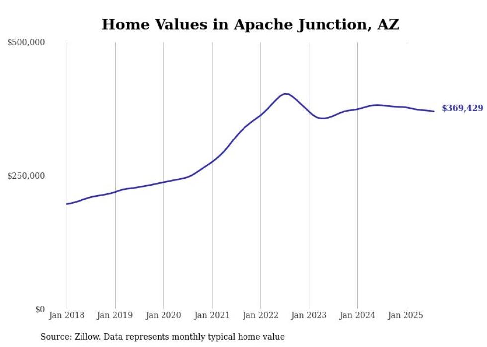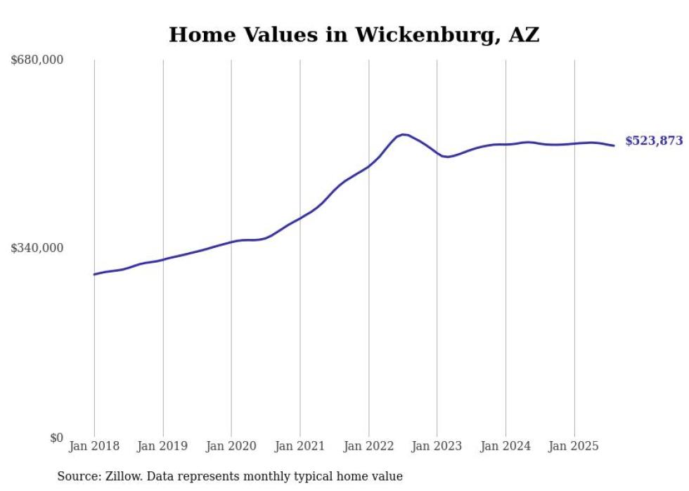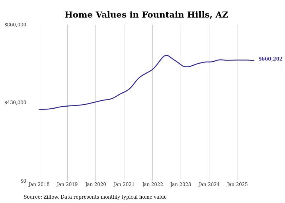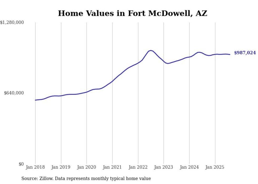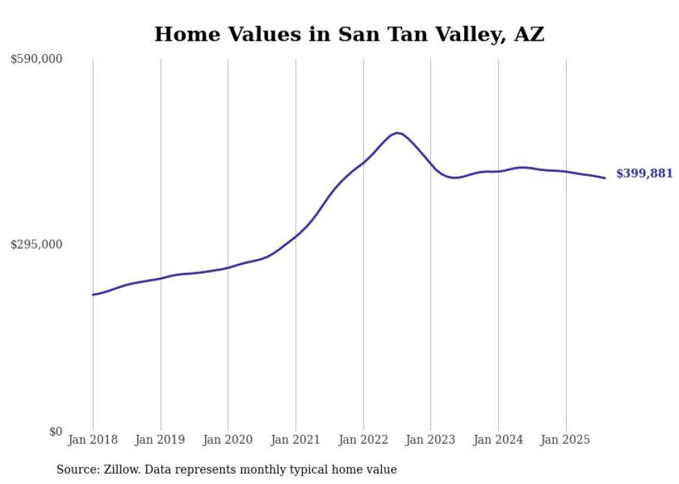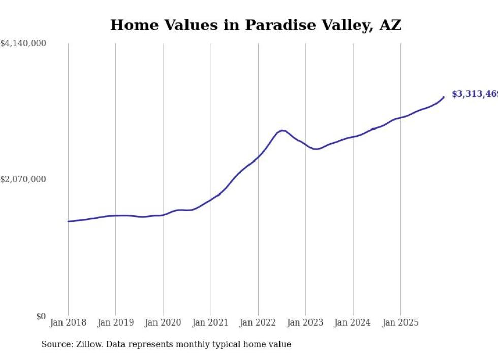 Stacker compiled a list of cities with the most expensive homes in the Phoenix-Mesa-Chandler, AZ metro area using data from Zillow. Charts show the monthly typical home value since January 2018.